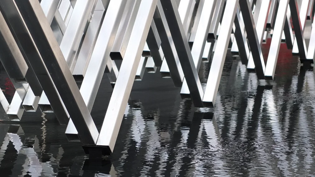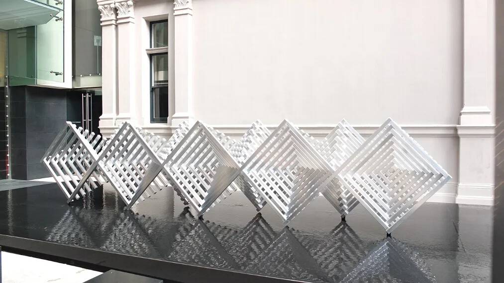 Interesting sculpture at the entrance. I like the geometry, the precision and the aluminum texture.