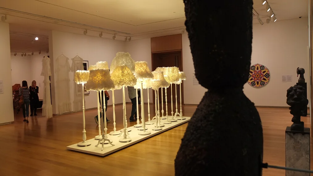 I finished the tour. I’m back to the main hall with the flower installation. Actually, these flowers are moving because of the air blowing inside them at random times.