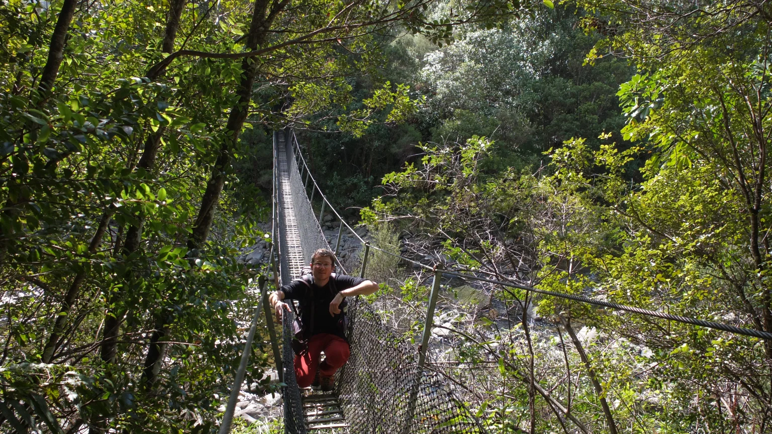 Soon after I started to walk on the track there is already a river to cross by a suspended bridge! That’s cool:-).