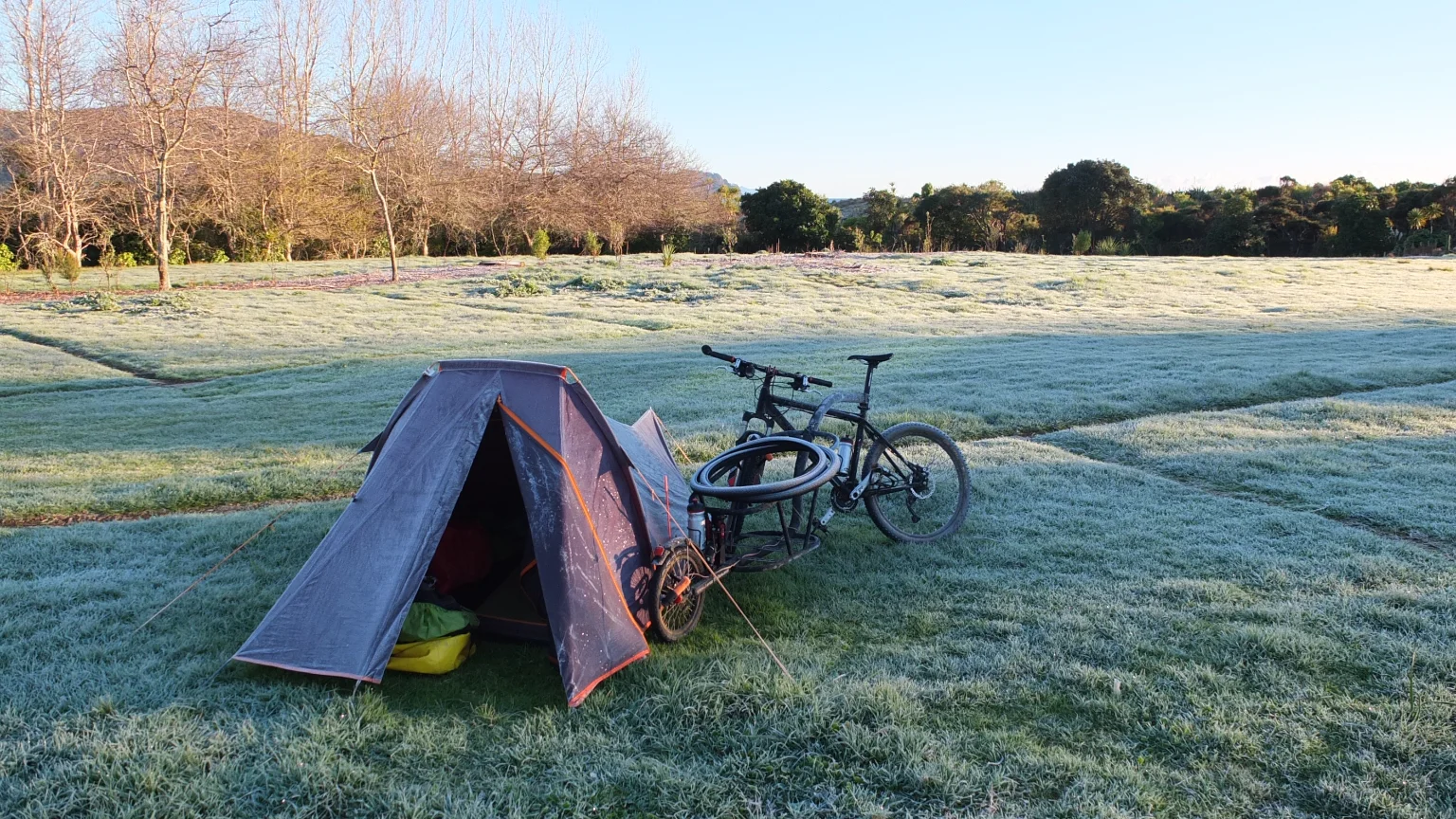 Today I’ve planned to reach Whitianga by the 309 road. Last night was cold. It confirmed itself when I discover this morning that all the grass was frozen! We are in the end of winter and it’s the first time I see that, I’m really astonished!