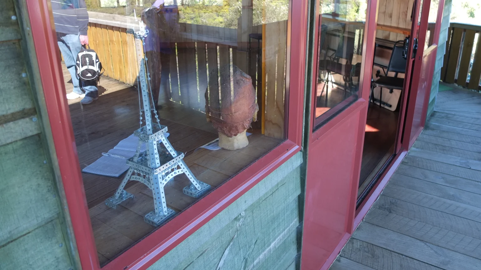 Ahah, yes I remember this as well. This man calls the top of his mount Eyefull Tower. That’s why one of the panels indicate “Eiffel Tower”. Maybe he built something to the top? But I can’t see it.