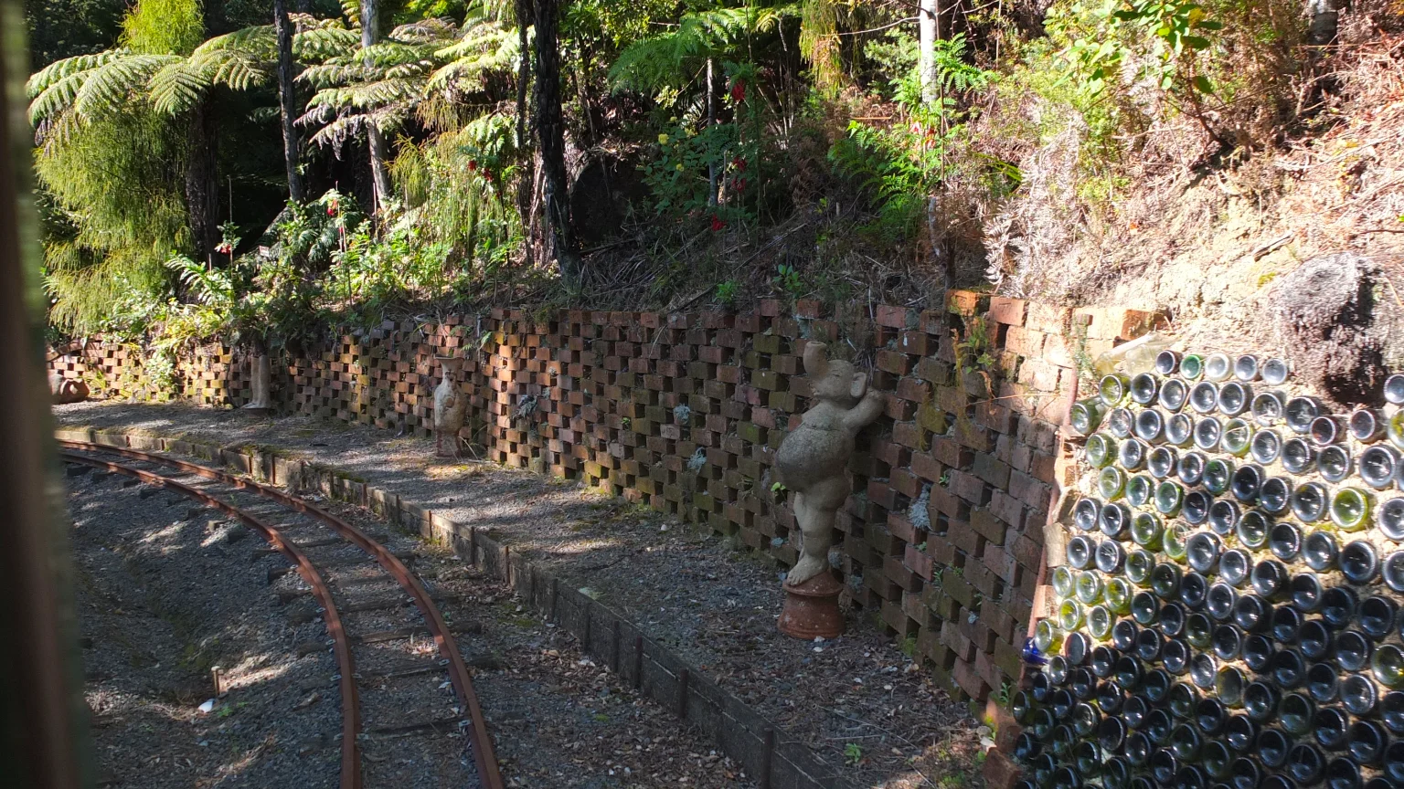 This man did a genius work! It’s fantastic!! I’m impressed and I’m not the only one that’s sure. Pete is the driver. Once a year he travels by bike like me with a friend. During the visit, when he came on my side of the train, he told me that Whitianga is too far away to reach today. But I know the camp in Coromandel is expensive. Then, he offered me to plant my tent in his garden for the night :-). Cool!