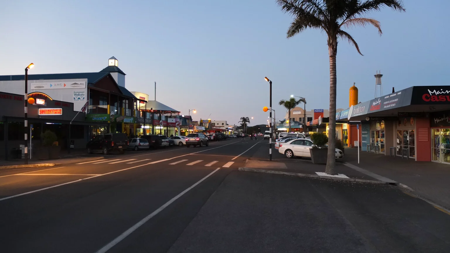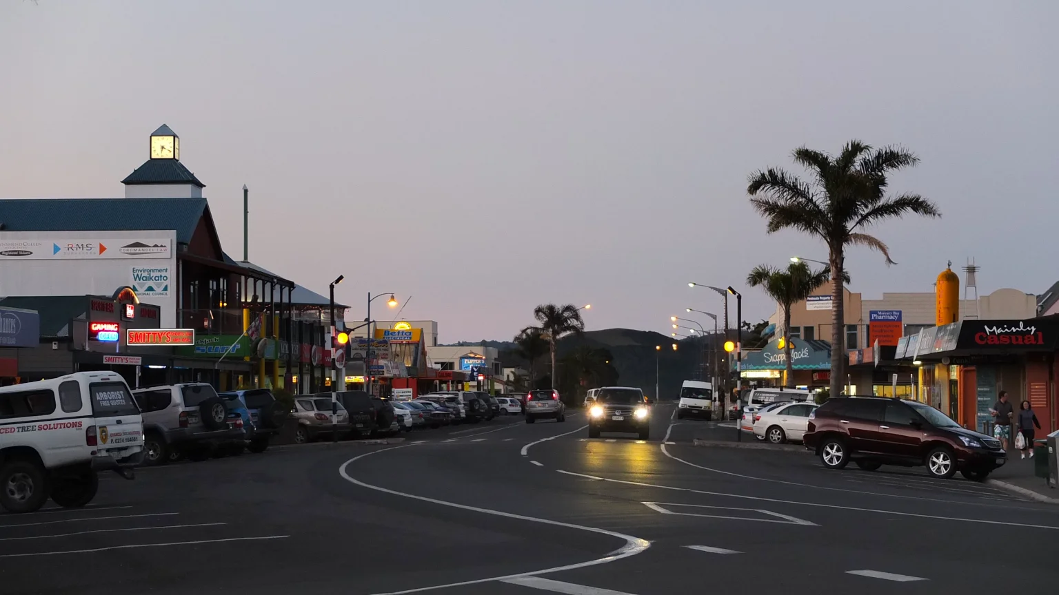 Whitianga main road at evening.