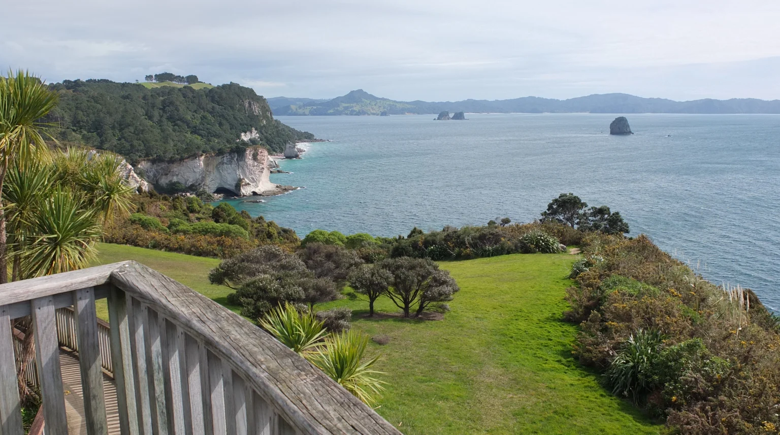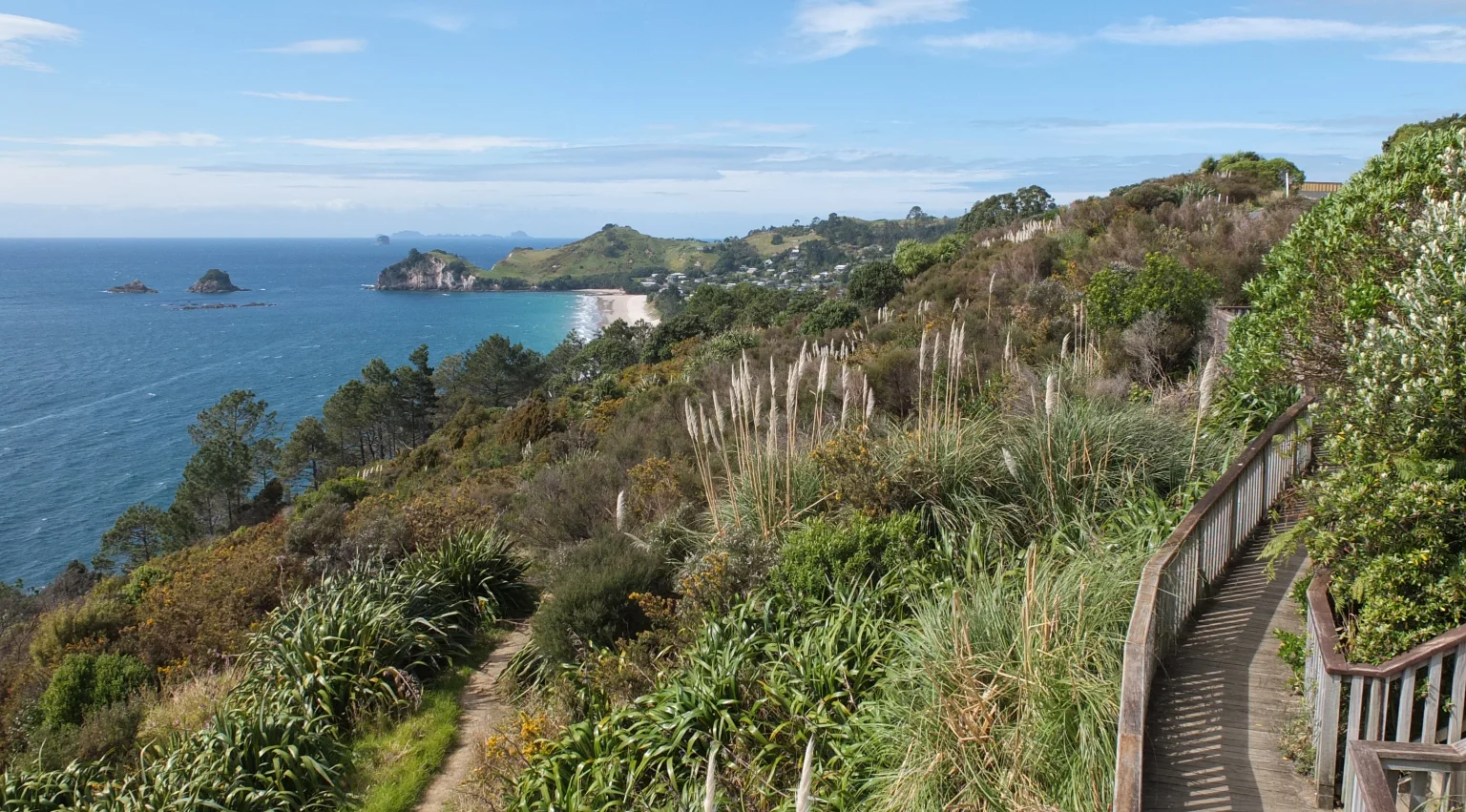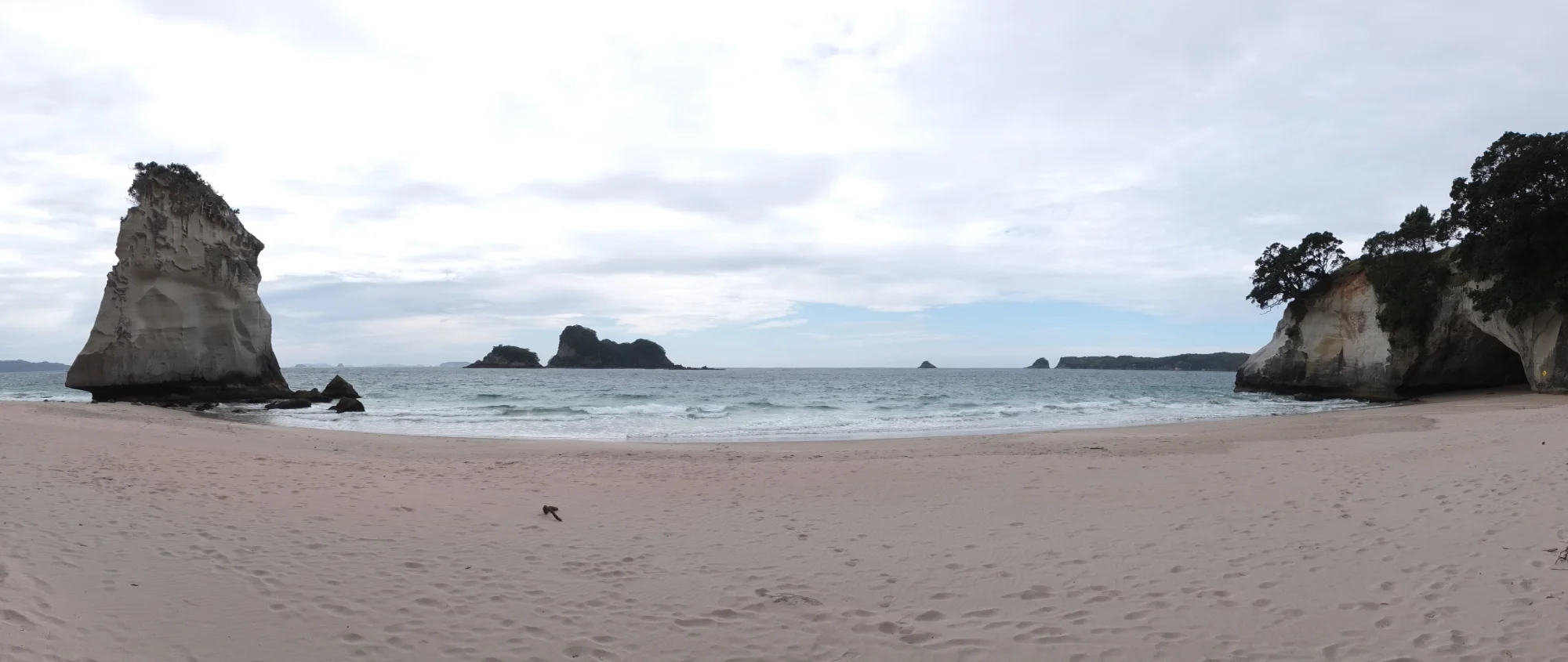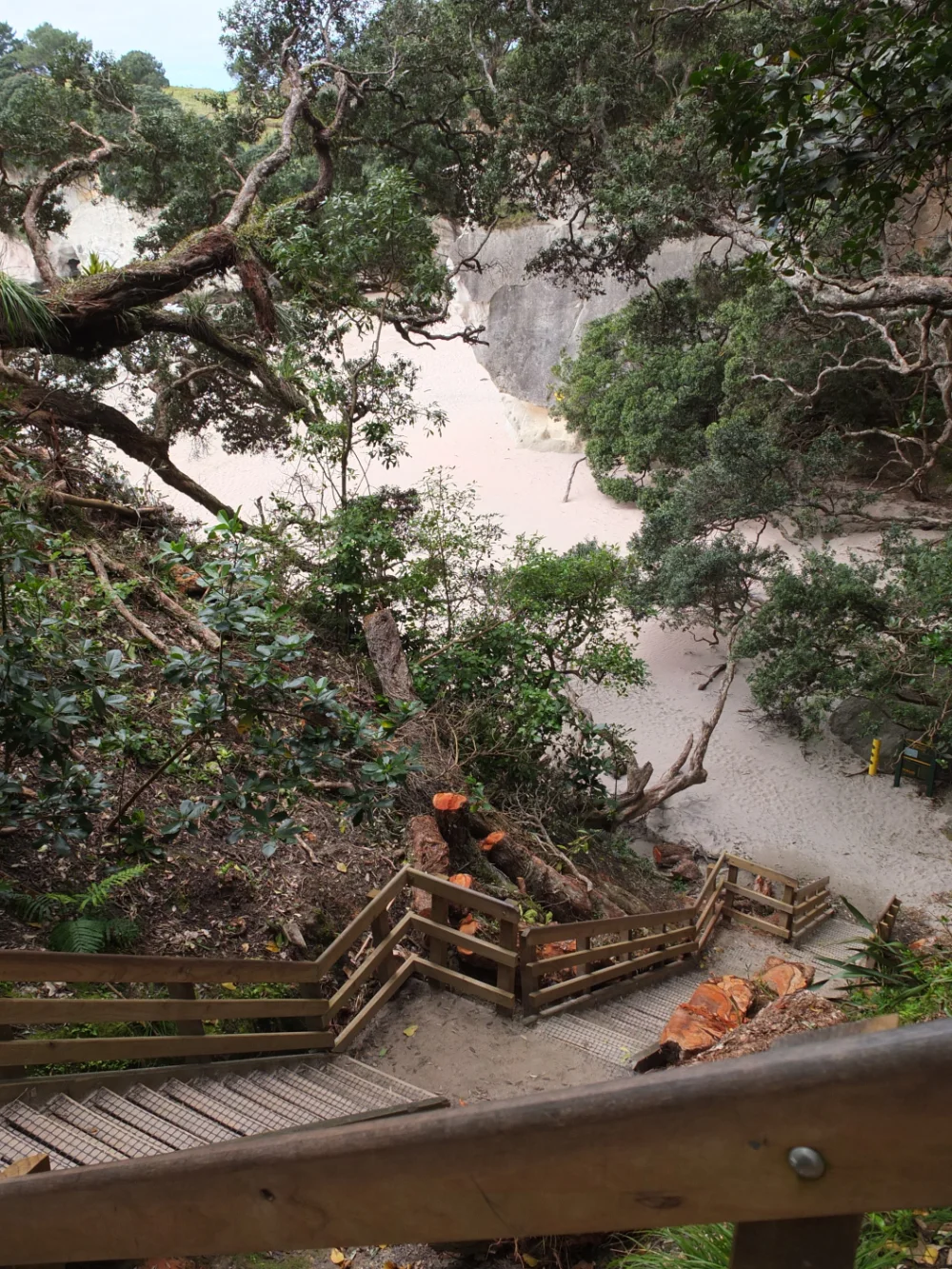 I’m at the beginning of the path which goes ahead to Cathedral cove, a big arc carved by the ocean.