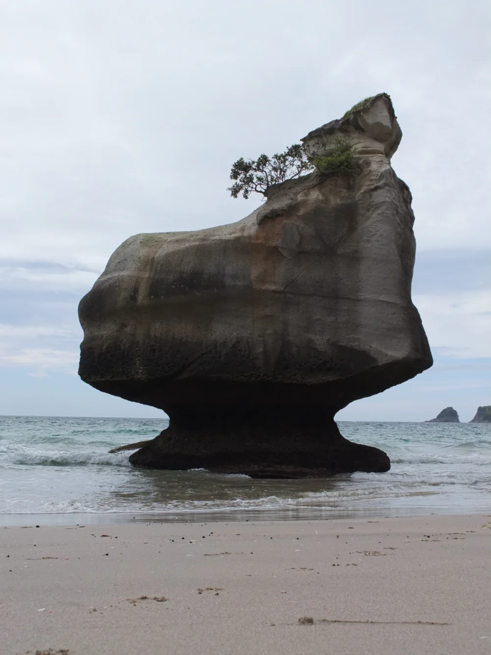C’est vraiment étrange ce gros rocher bizarre posé comme ça sur la plage !! et il y a même des arbustes qui poussent au somment.. étrange étrange.. les aliens seraient-ils passés par là ??