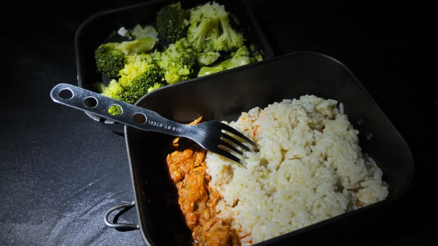 Tonight, we have rice with hot chilly tuna and brocoli :-). Then a delicious kiwi for dessert. Miam! See ya!