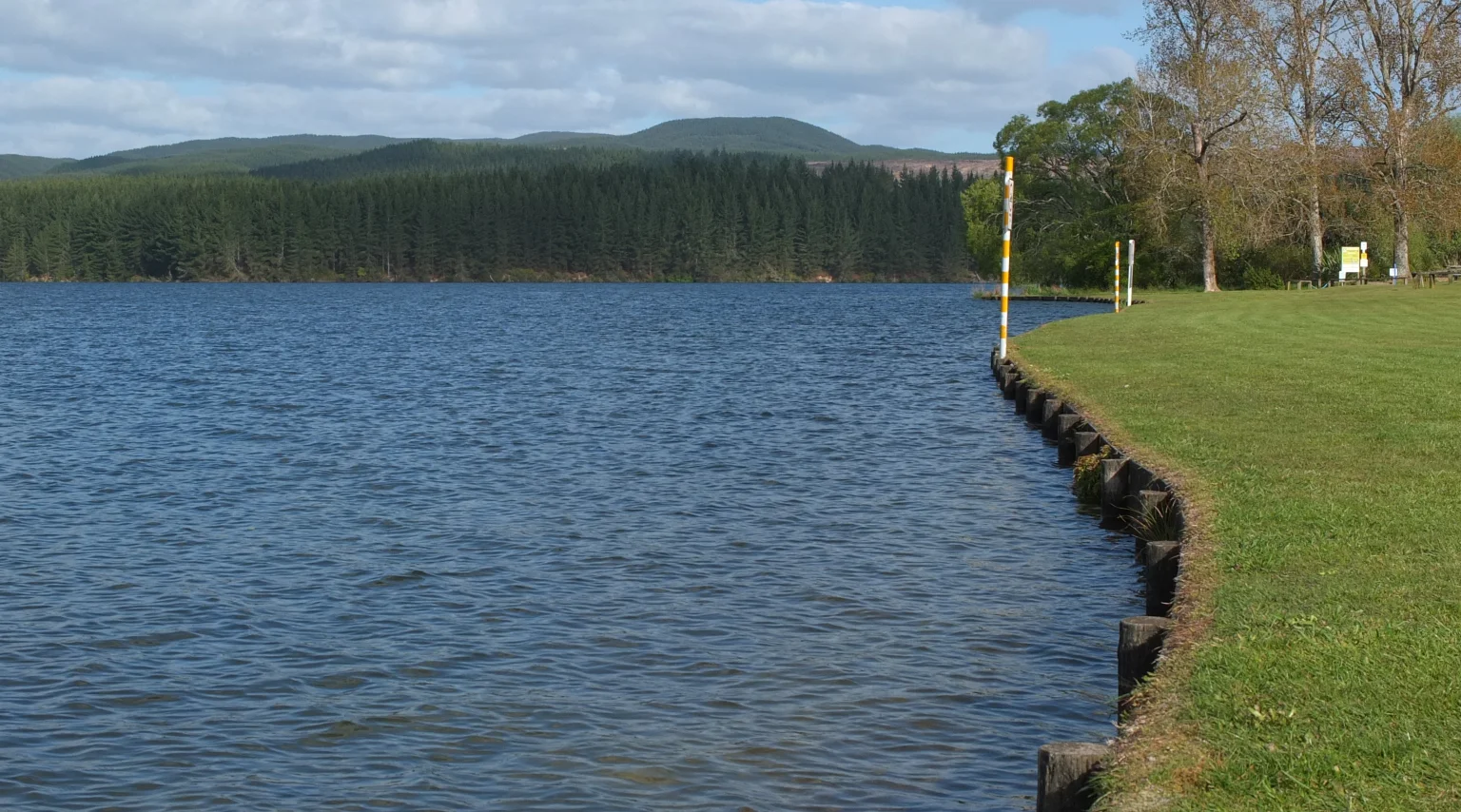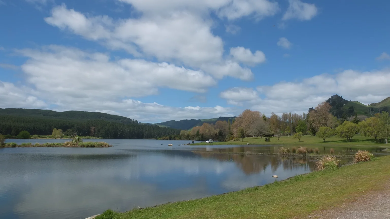 I’m now in Mangakino and there is… nothing. I cannot even find any panel that points to the campsite. Fortunately my GPS is helpful: the next road on the right is called Lake road. That should be it.