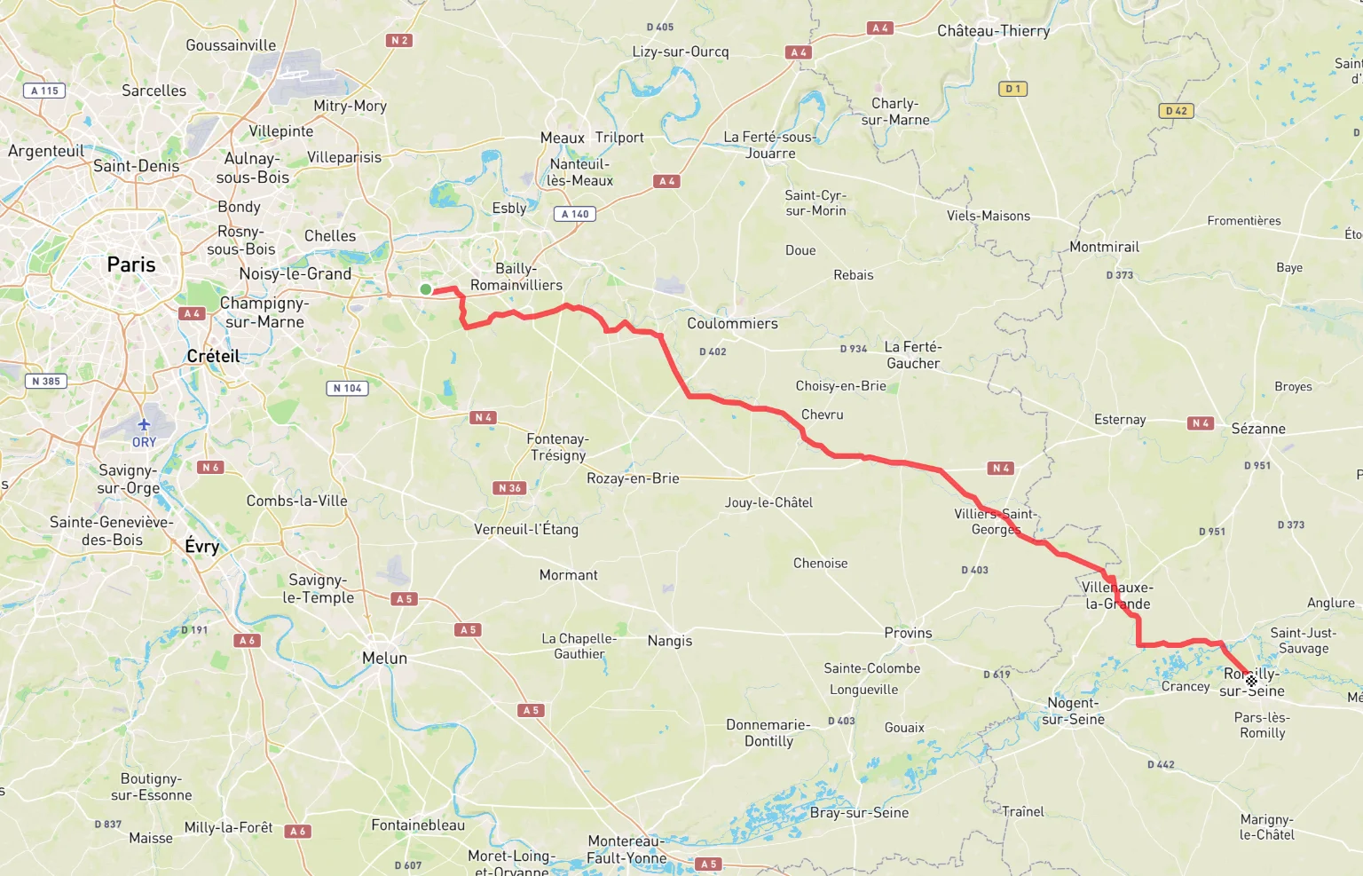 Last time with Max, we were bothered by the rain. This time I am on my own and the weather is pretty hot. The goal for today is to reach Romilly sur Seine again but this time I leave from a further distance. I will cover roughly 100km. Here we go!