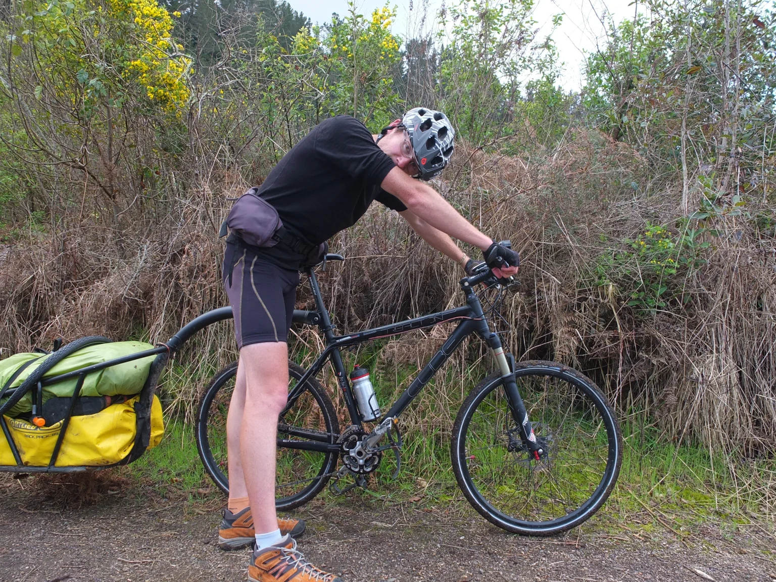 Fiou! I need a pause! The last part of the track was to steep for me with the trailer. I needed to push my bike…