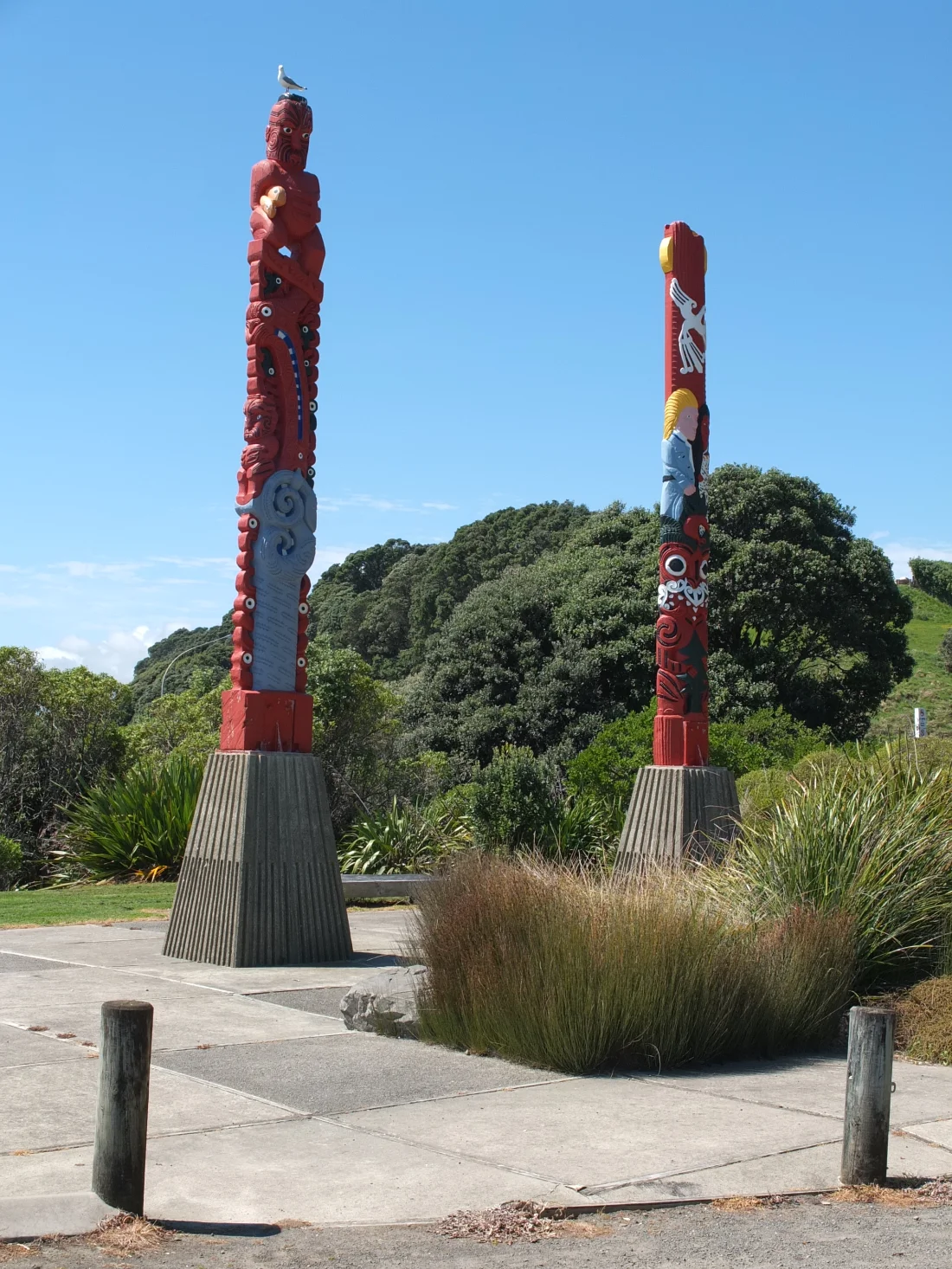 Two wonderful Maori sculptures. That seabird doesn’t respect them because they shit on it!