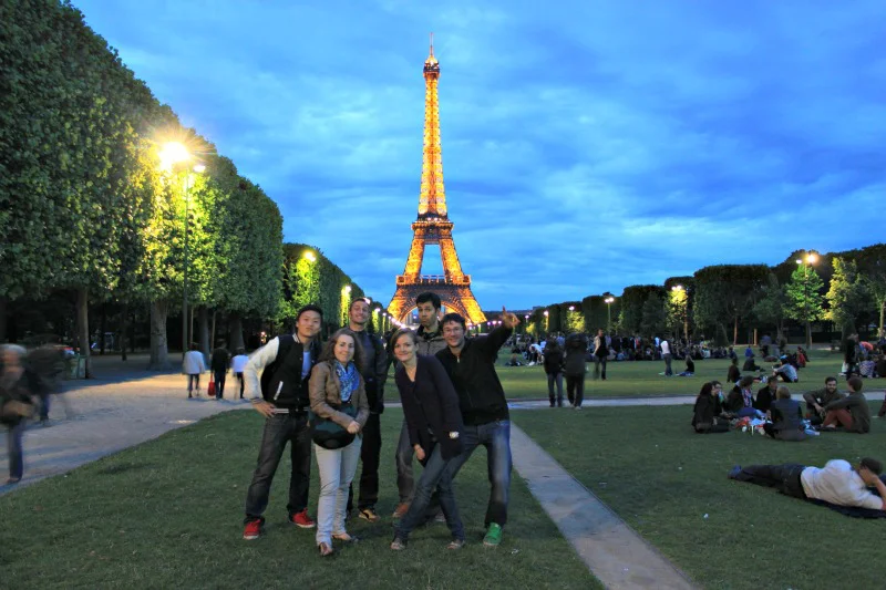 For my last night in Paris, I organized a small pic-nic on the Champ de Mars front of the Eiffel tower. Cheng, Marie, Carlos, Çagda and Alban could join. The weather was smooth and the place quiet. We had a great evening 🙂