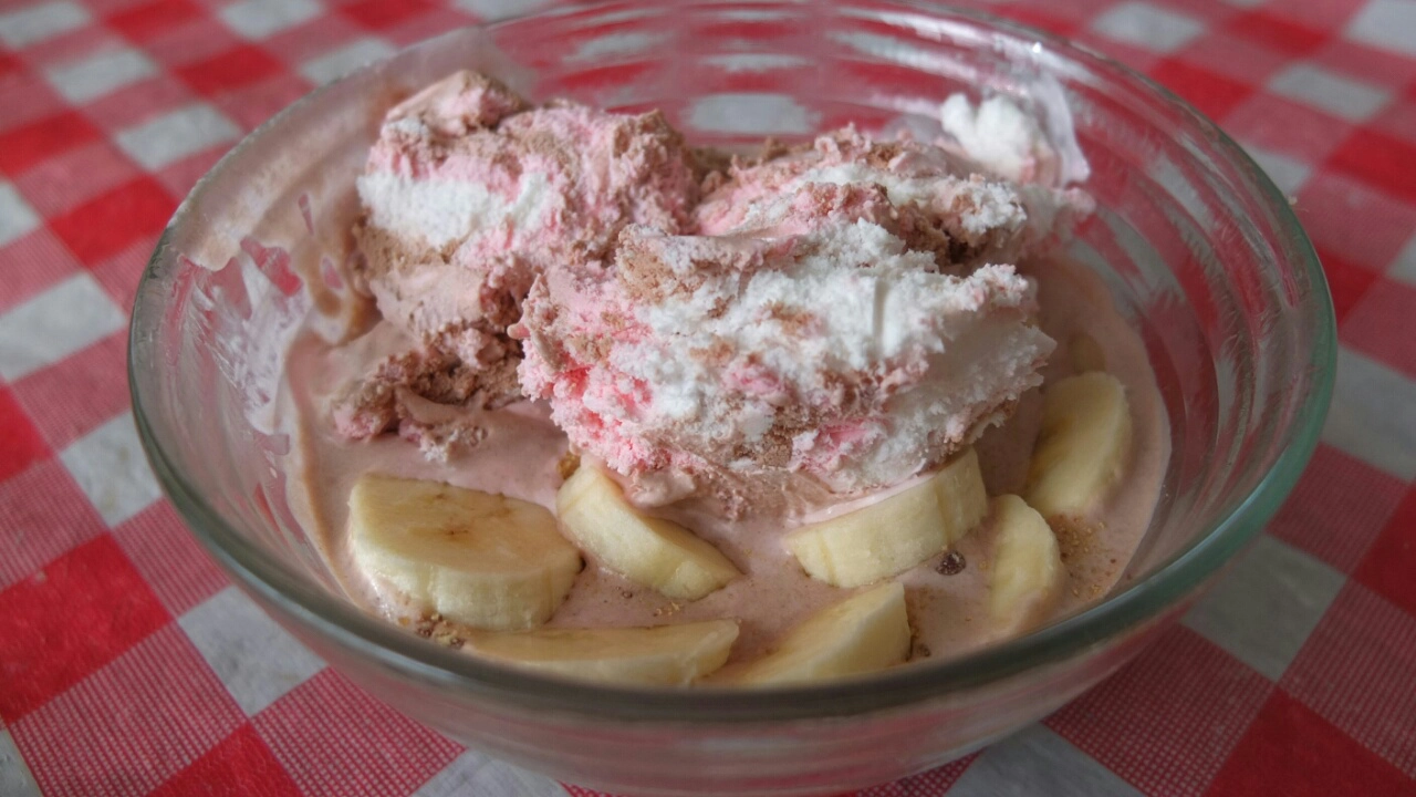 We got hungry and after a good lunch, Caila prepared some ice cream with bananas for dessert.
