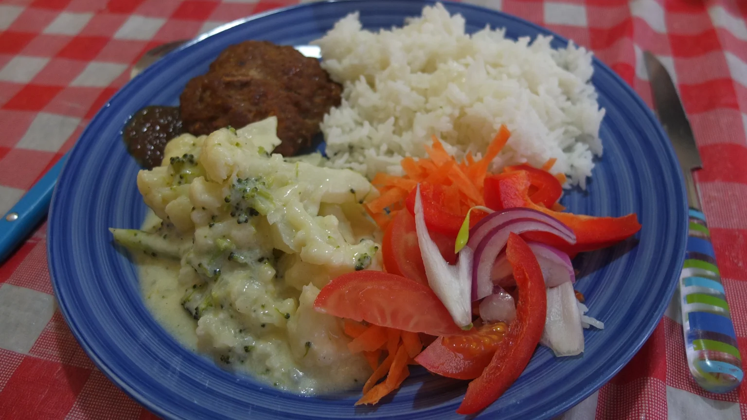 For dinner, Maila prepared a good meal with meat balls, white rice and vegetables we eat yesterday with the crepes. Good!