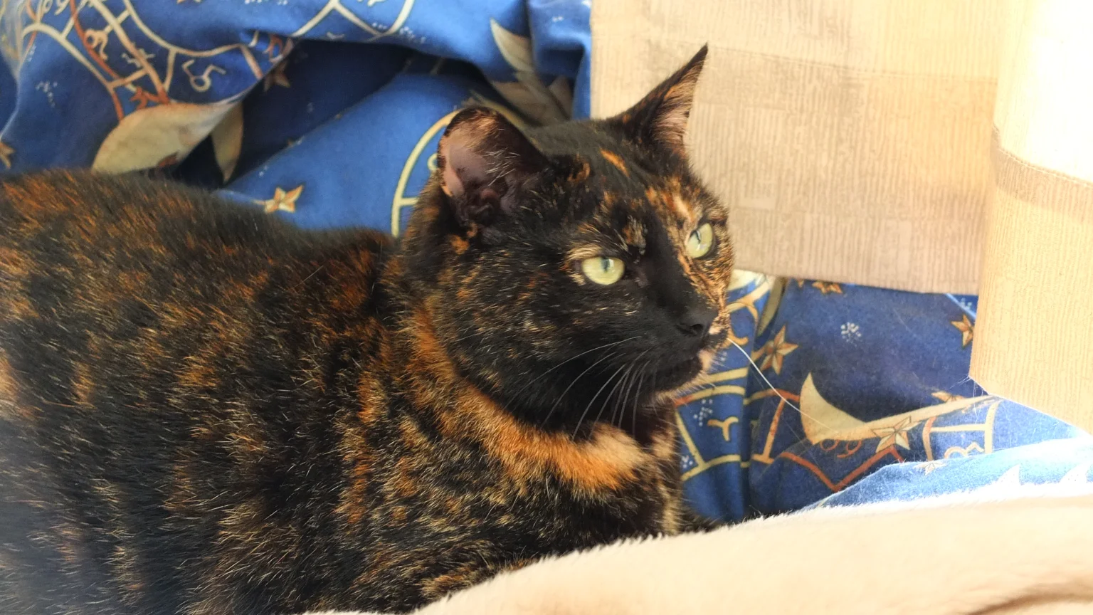 Since I arrived at Maila’s home I could never approach her cat. She is very shy and does not show up very often. Her name fits her very well: Shadow. I finally have a picture of her now :-).