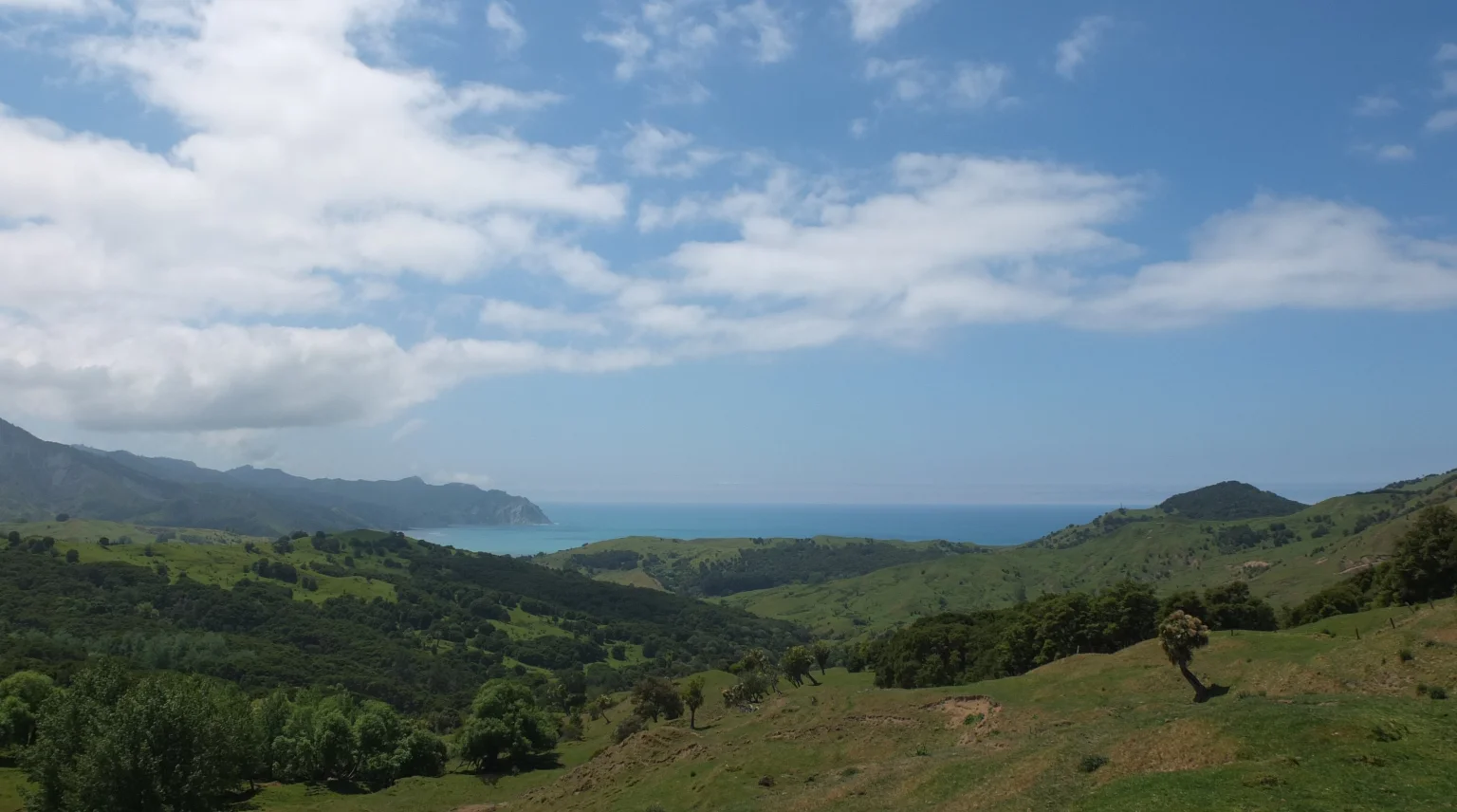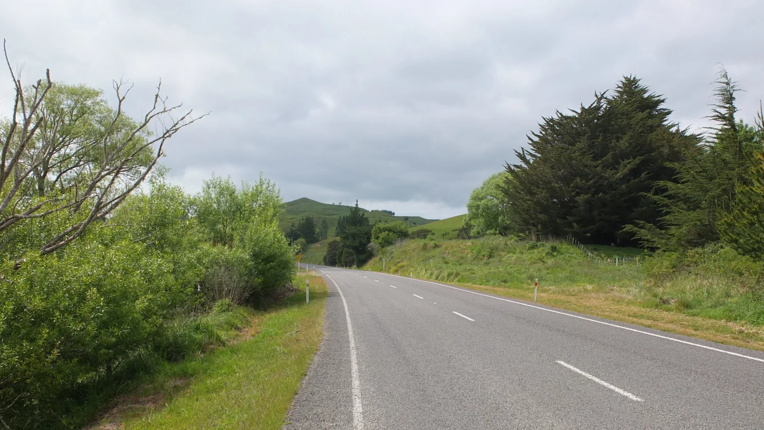 After Tokomaru bay I climbed a very long slope. The temperature increased every minute: 25°, 26°, 27°!… Hey GPS, what are you doing? Are you expecting me to collapse along the way? 28°!!… Hey, stop! 29°…, 29.6°. Okay I need a rest…