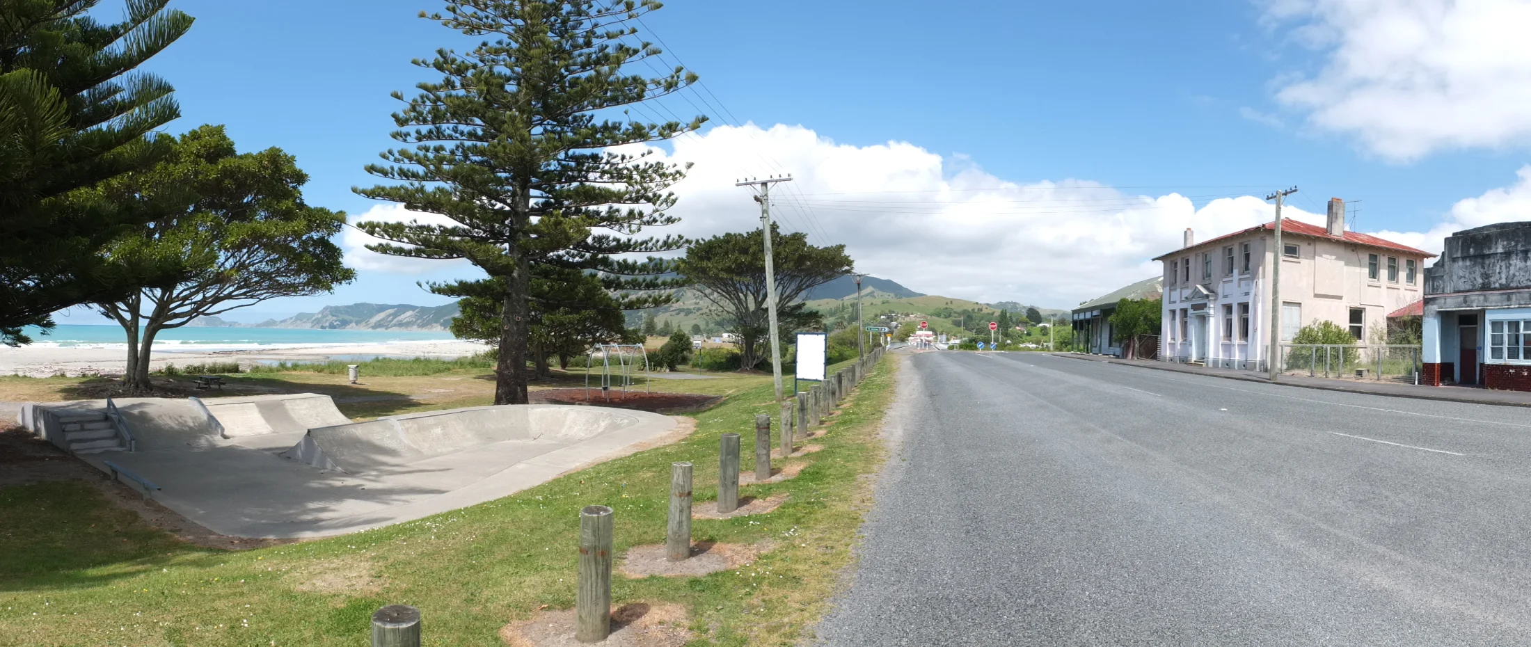 Tokomaru bay (Wiki) feels quite remote. There is some old “USA western” looking empty shops and few houses around. Not much seems happening around here.