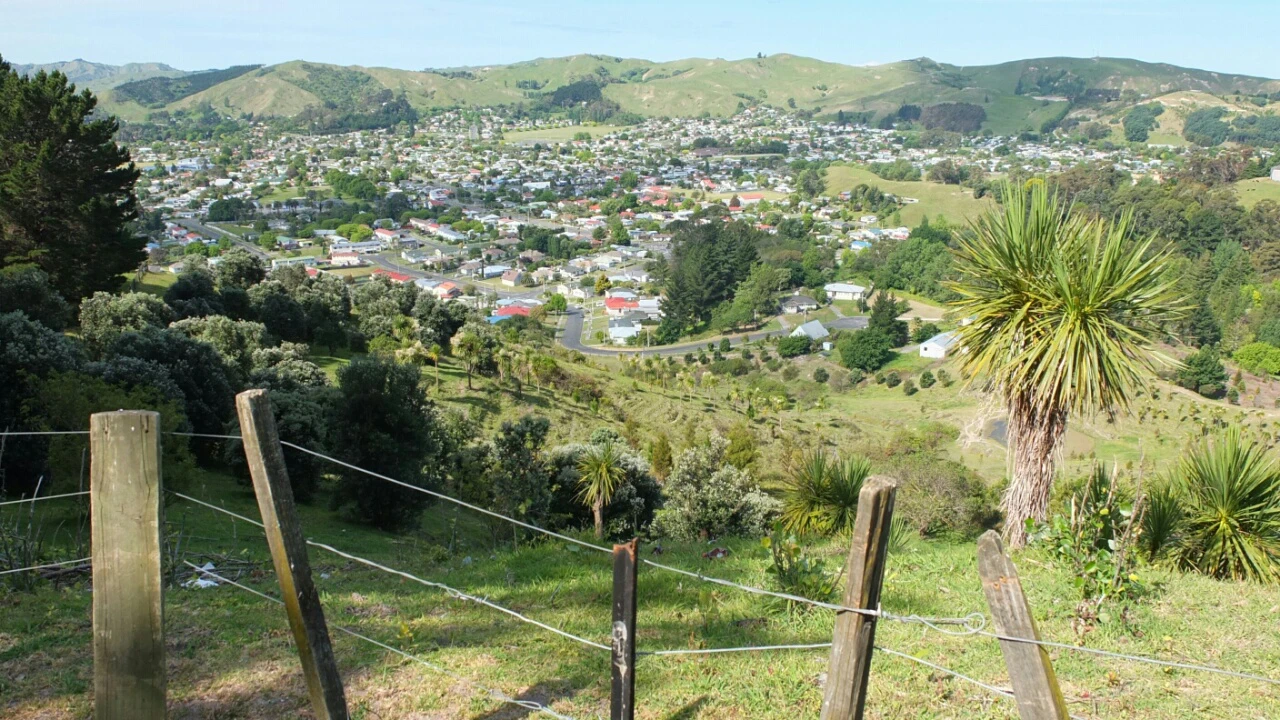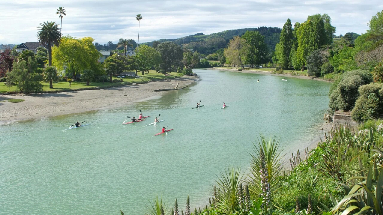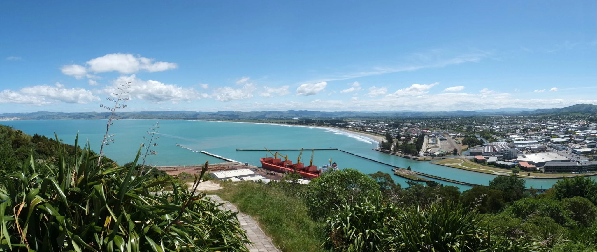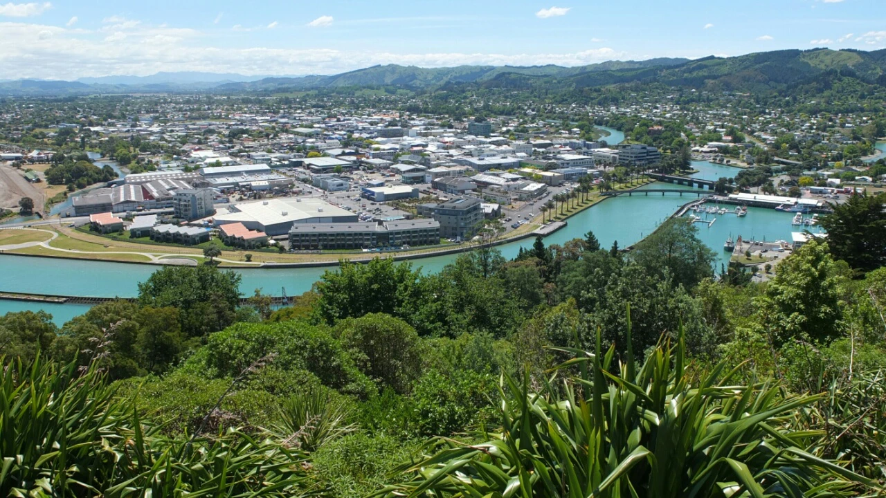 Gisborne city center. The first day when I arrived, I ate along the Tūranganui river, a little beyond those two bridges, under to the bunch of trees.