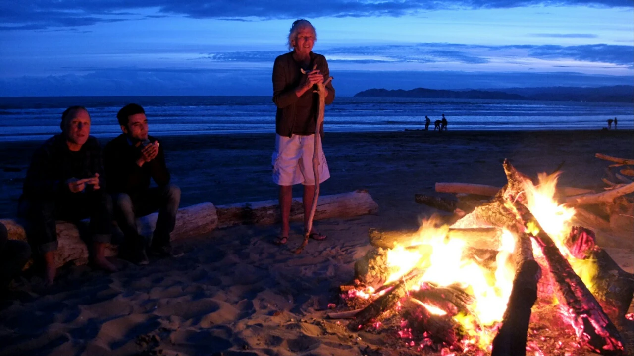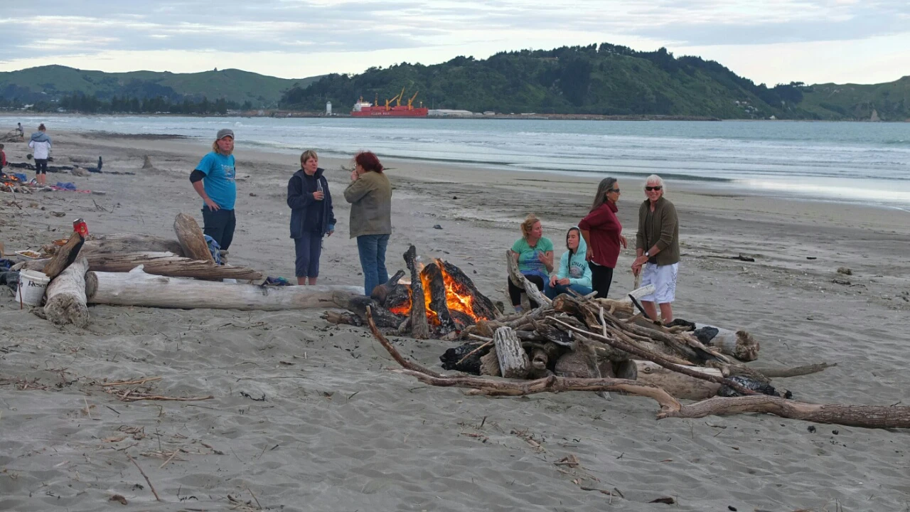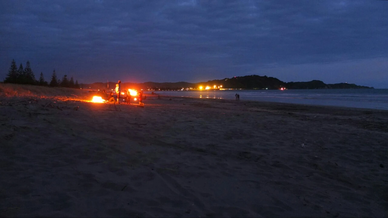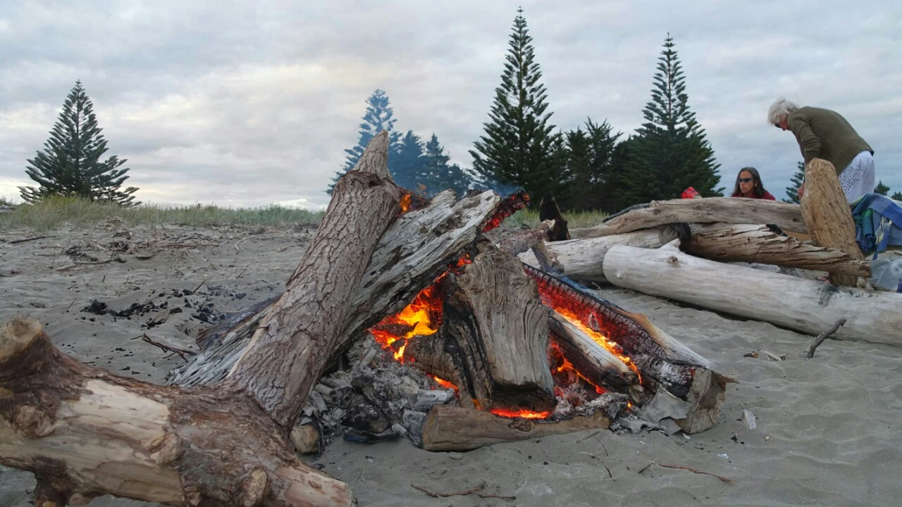 We have reached the beach with Jane, Chris, Tariq, Manuka, Brownie and Jane’s friends 🙂 The fire is already burning and we have so much wood for all the night, cool!