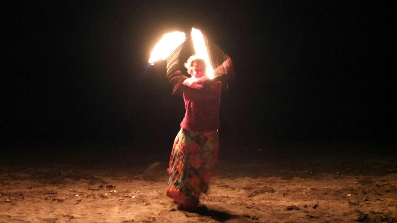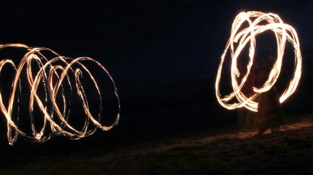 They don’t burn themselves because they don’t touch the fire. Jane used “Bolas” it’s a chain with a ball on fire at the end and the over guy handle some sticks. The sane we put on cocktails or we use for birthday party. It’s it more clear now ? 🙂