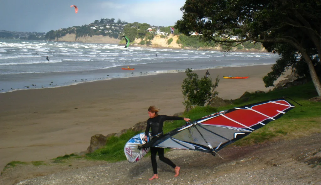 In Orewa, the beach is wonderful! The first day, the wind was very powerful and steady. There was a good dozen of kite surfers on the water. The next day, the wind dropped but this time I saw a good fifty surfers catching waves. That was terrific!
