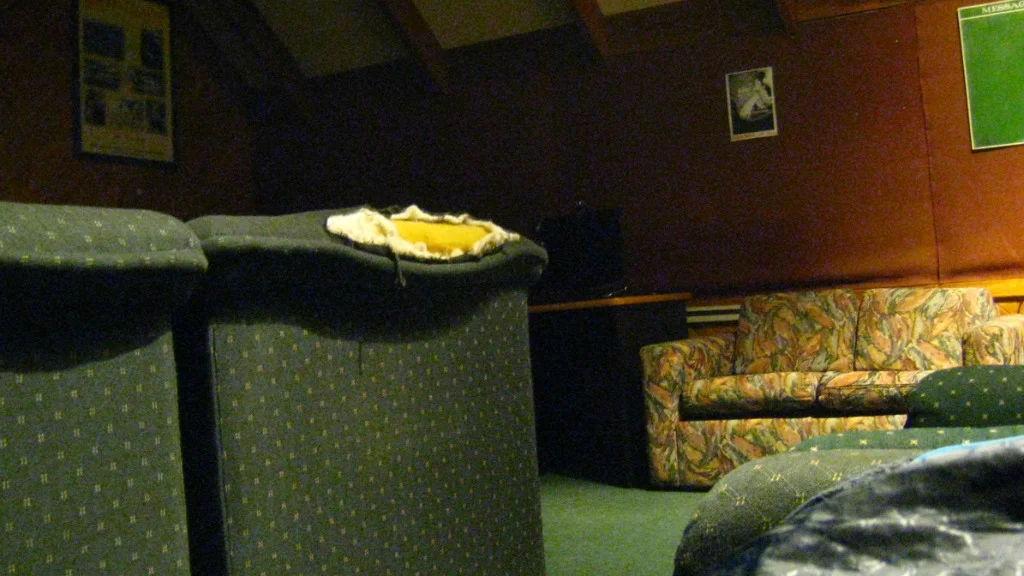 I start with the TV room. Here they have a bunch of couch, very comfy, and a TV on the wall for movie nights. After riding roughly 500km, it is good to sink in one of these 🙂