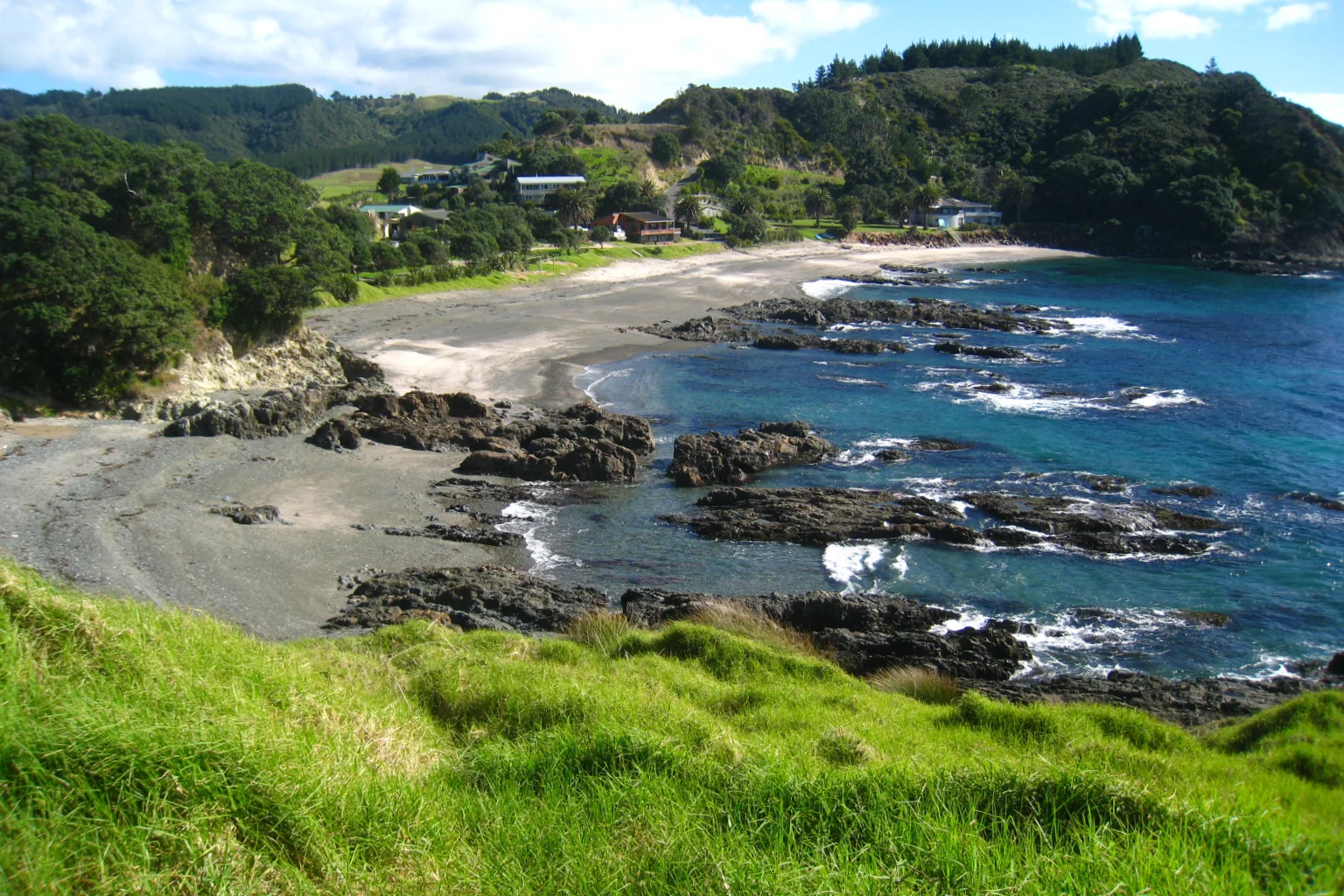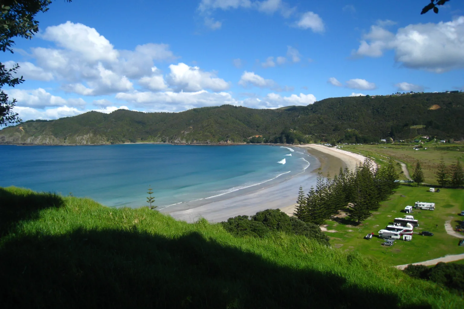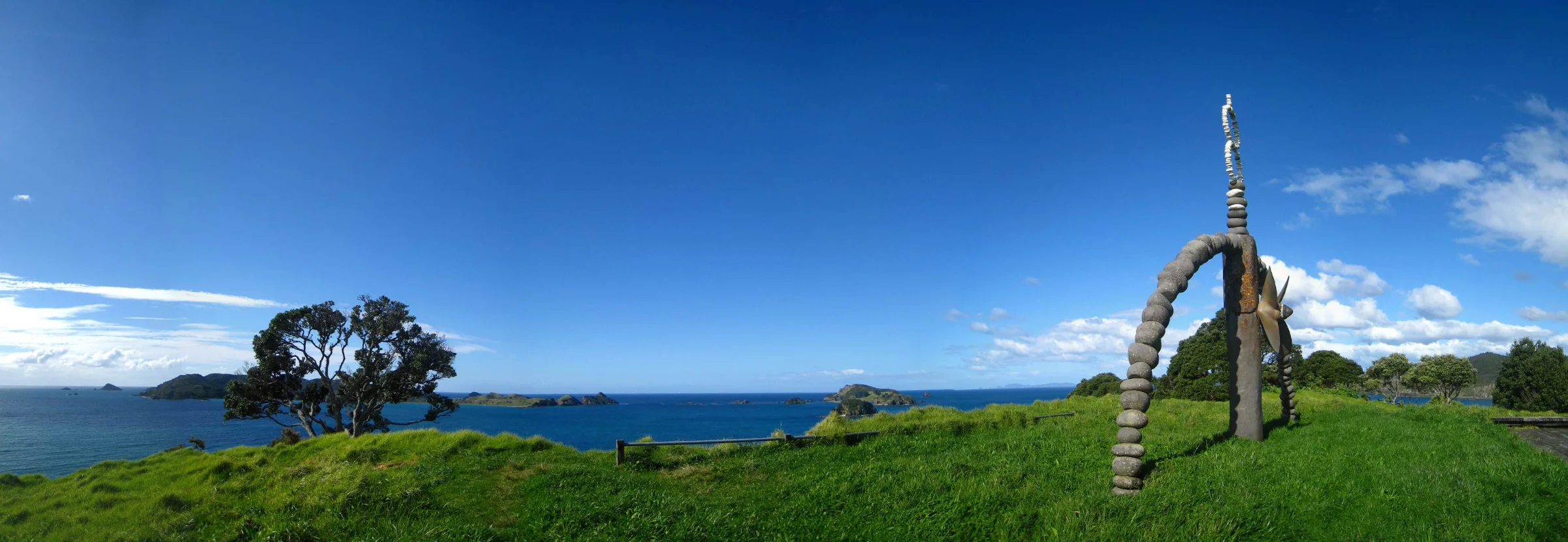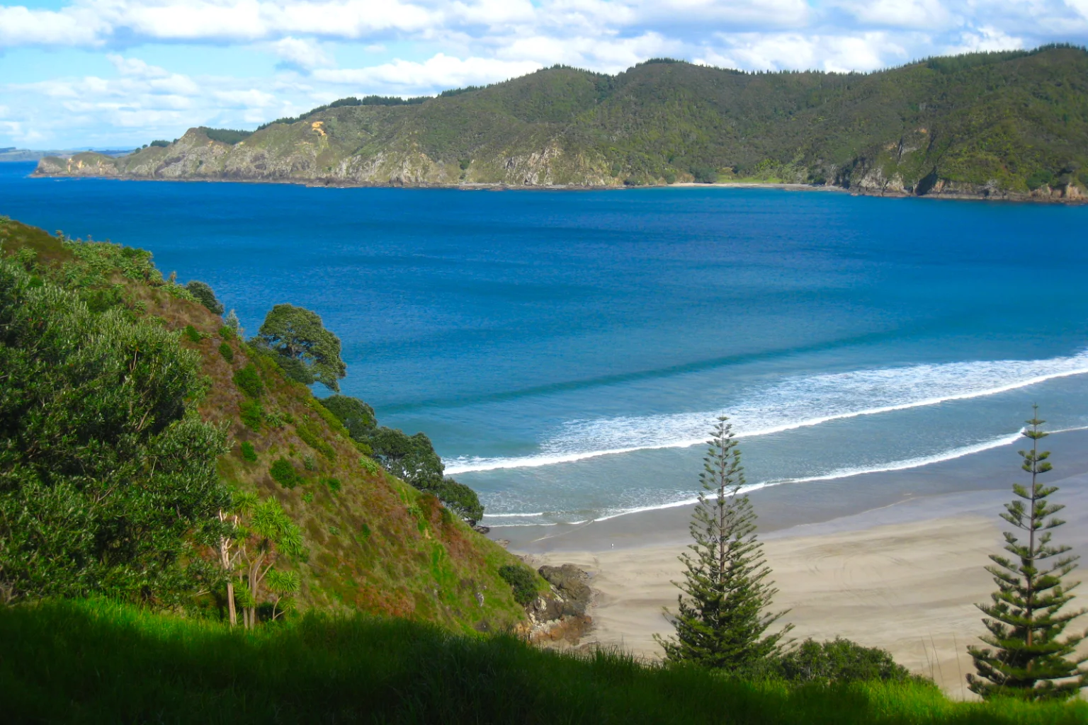 On the left side of the picture, in the ocean, between the little islands sank the rainbow warrior in 1990 (Wikipedia), the Greenpeace’s boat.