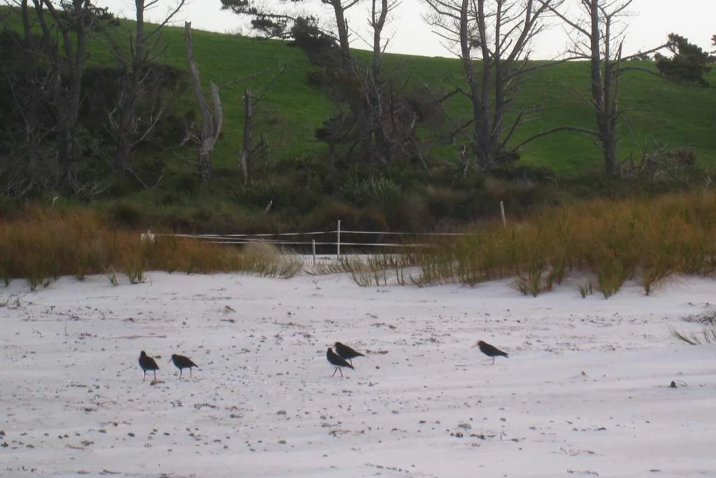 Its name is: Tuturiwhatu pukenui (photo). This bird has a funny look. It stays almost always on the ground and run “the head in the handlebar”. You can listen to its sounds here.