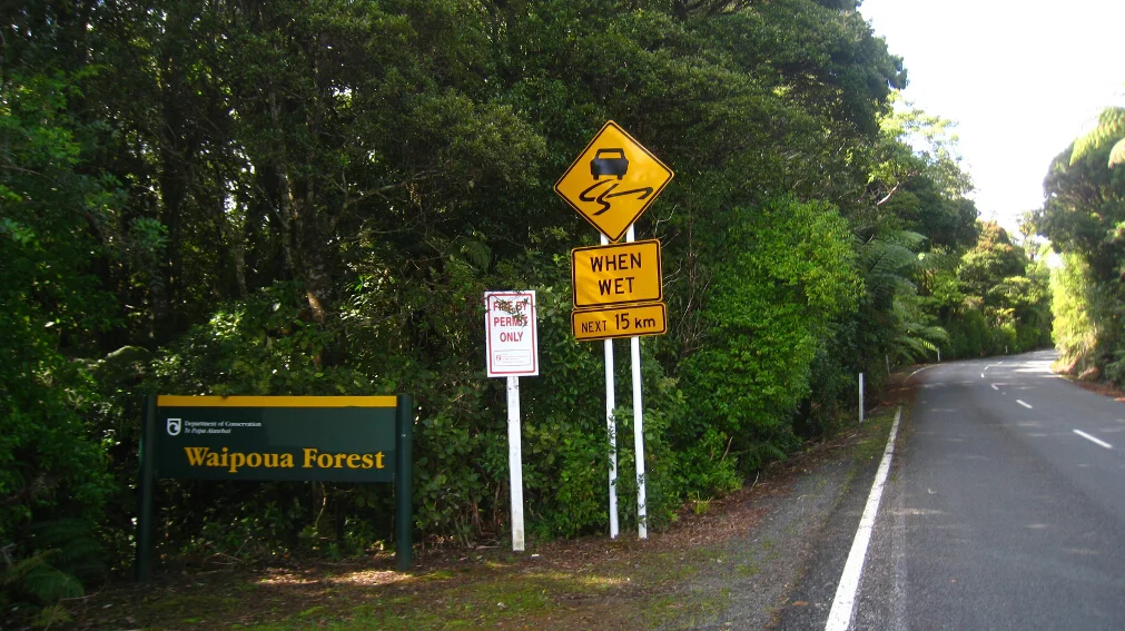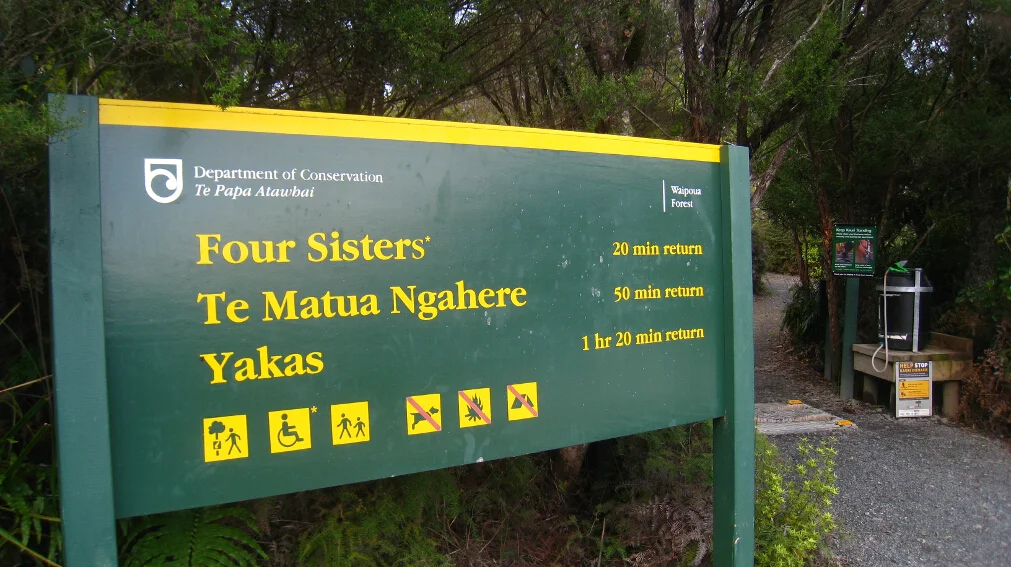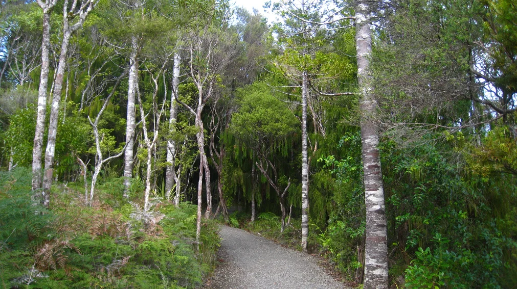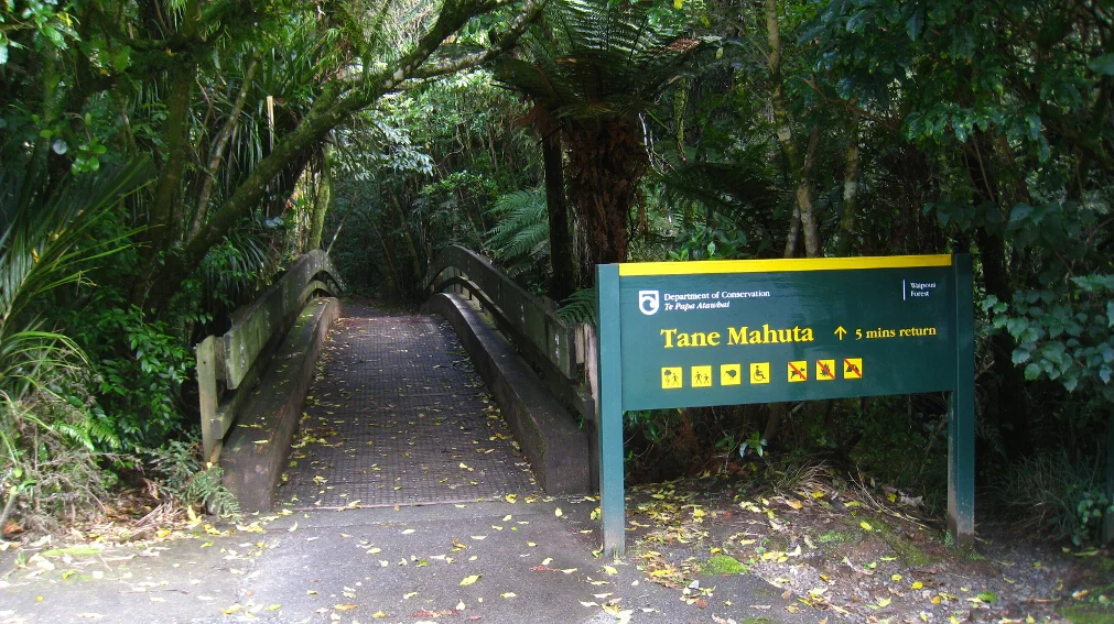 The feeding roots of kauri trees are shallow and delicate. Walking off the formed, protected paths and boardwalk can kill these giant trees. Toitu te whenua, Leave the land undisturbed.