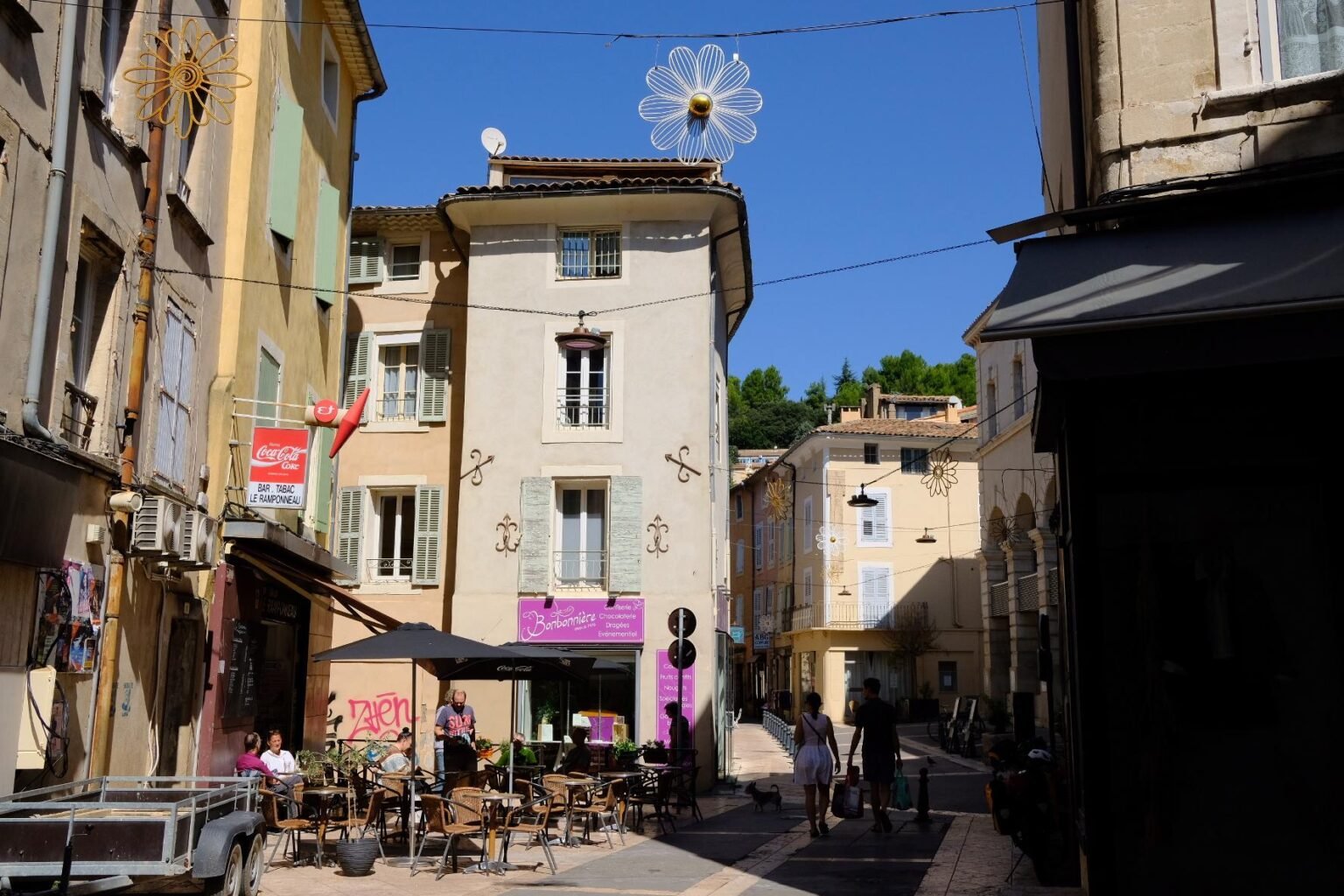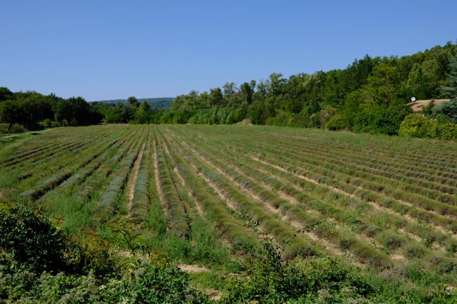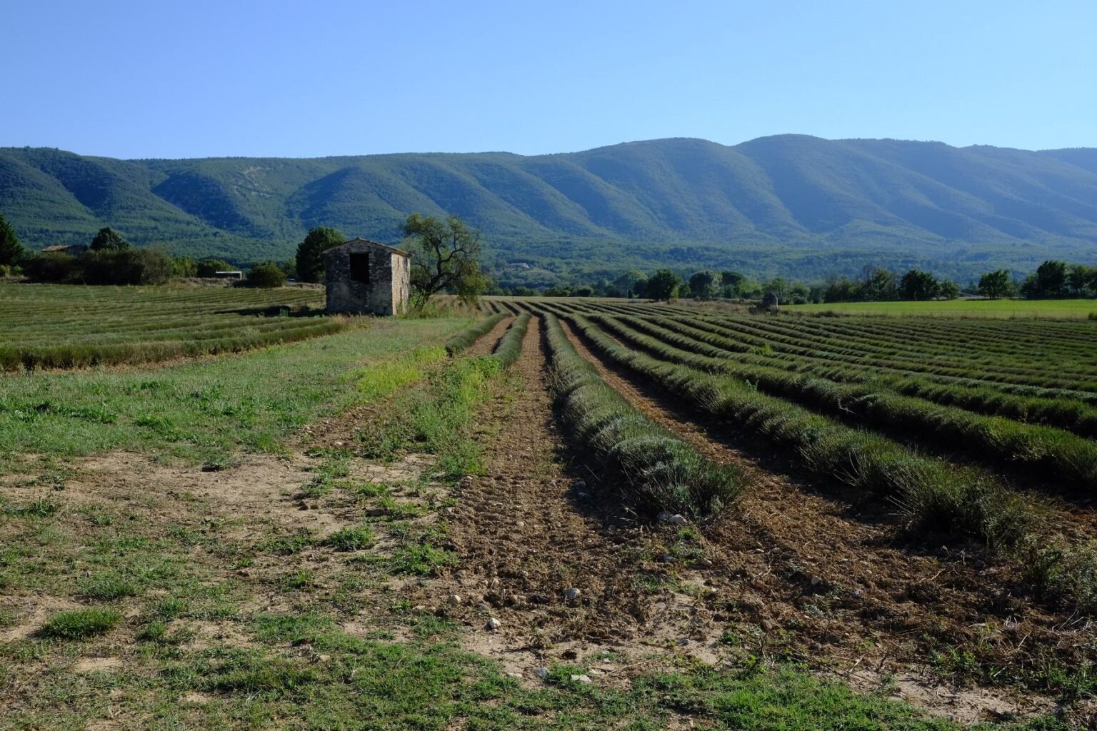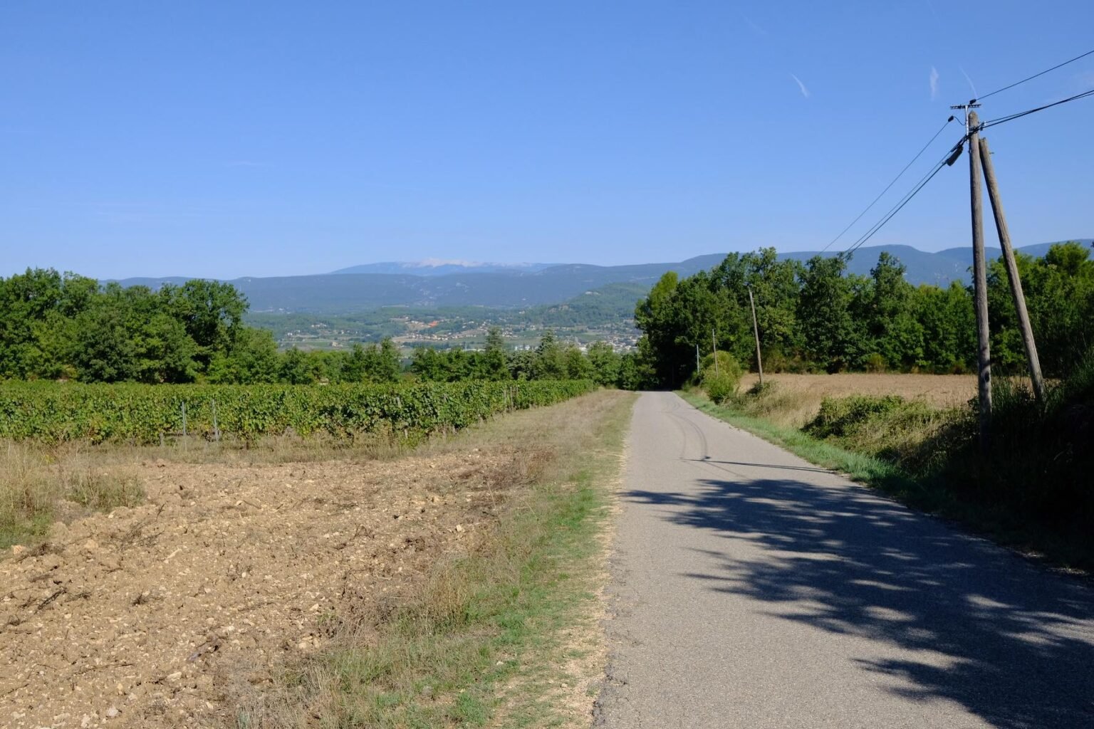 Petit café à Bonnieux puis c’est parti pour de la descente à travers les vignobles, et autres exploitations d’arbres fruitiers, ou encore entre les champs de lavandes déjà taillés.
