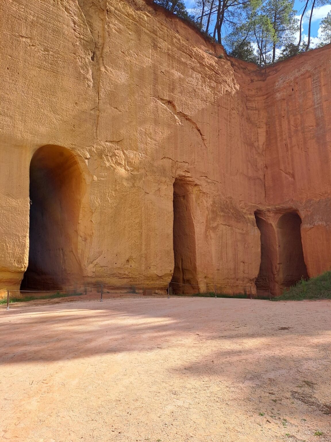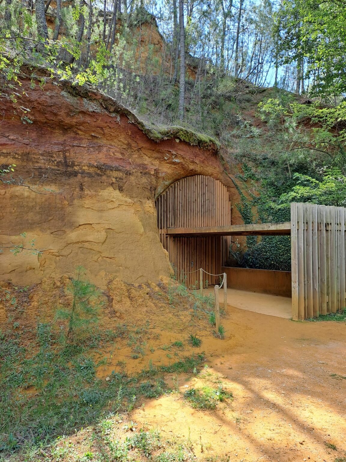 La guide était super intéressante et amène les sujets avec fluidité. La carrière classée au patrimoine historique à été creusée entièrement à la pioche. L’ocre jaune est séparé du sable avec de l’eau. Le sable plus lourd descend et L’ocre reste en suspension dans l’eau. Ensuite l’eau débarrassée du sable est envoyée dans des bassins de décantation. Avec le soleil et le mistral l’eau s’évapore. L’ocre est récupéré sous forme de blocs. Ils sont broyés et tamisés pour obtenir la poudre. 40 km de galeries ont été creusées dans cette carrière. Une galerie peut mesurer 3m de large par 6 à 8 de haut. Très impressionnant.
