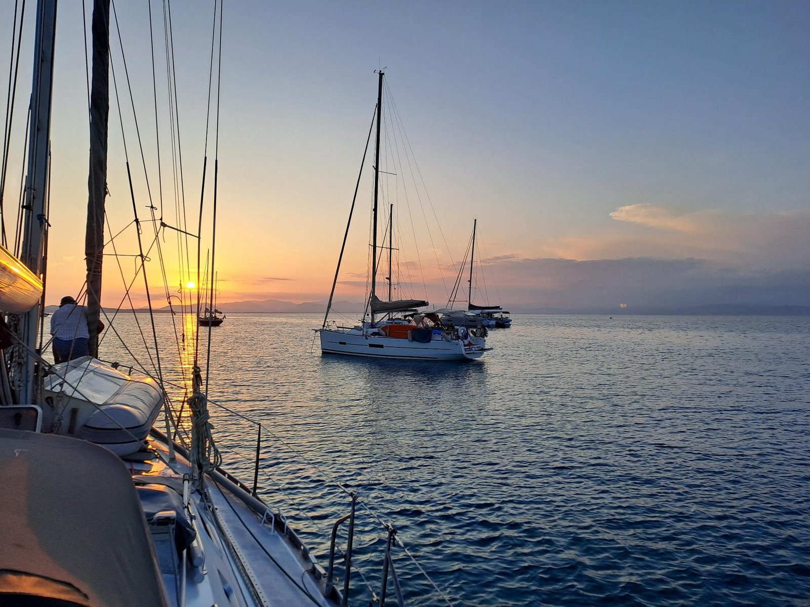 Petit apéro au coucher du soleil et repas simple. Cette nuit va être une bonne nuit de repos 🥱. Demain nous préparerons le bateau pour la traversée et ferons un point météo. Pour le moment le départ pourrait se faire vendredi vers 5h du matin. Allez bonne nuit !