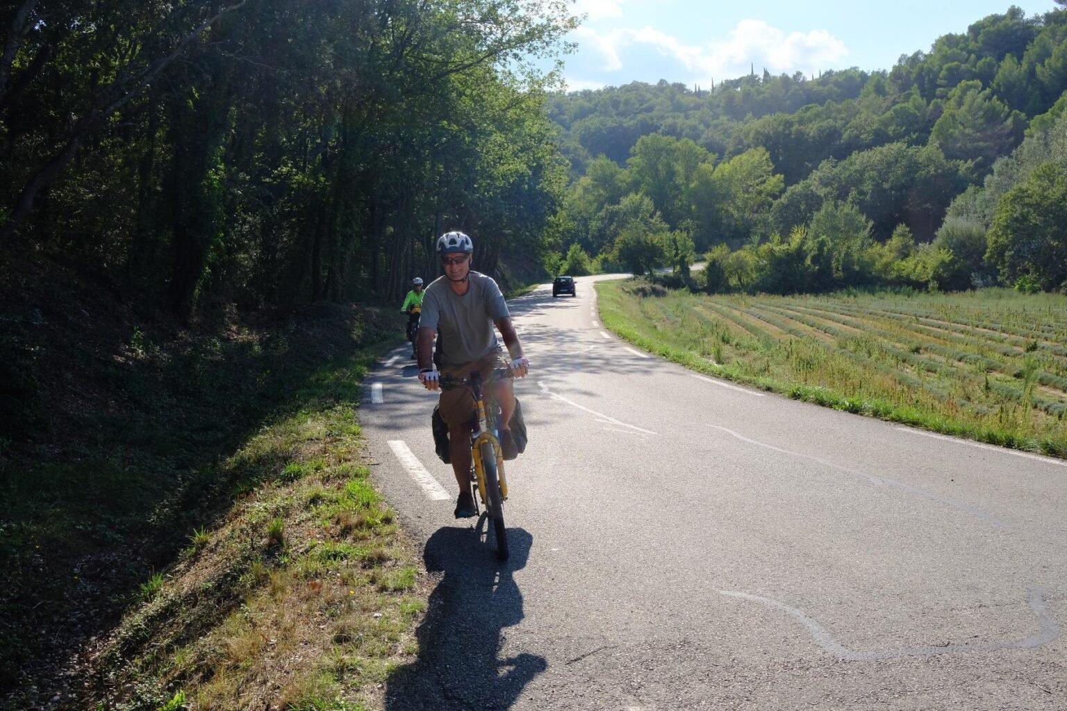 La nuit dans la yourte était bien confortable. Après le petit déjeuner, on a préparé les sacoches des vélos, puis direction la gare de Cavaillon avec la voiture pour rejoindre le départ du voyage à vélo. On charge les vélos, enfile les cyclistes, postérieur sur la selle et c'est parti !