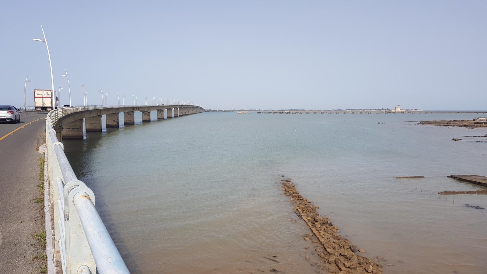 Apres avoir passé un moment sur un marché à la Tremblade, car Mamy discute avec le commerçant et lui vide le magazin en commande 😁, me voilà parti pour l'île d'Oléron l'accessibilité cyclable n'est pas top par le pont.