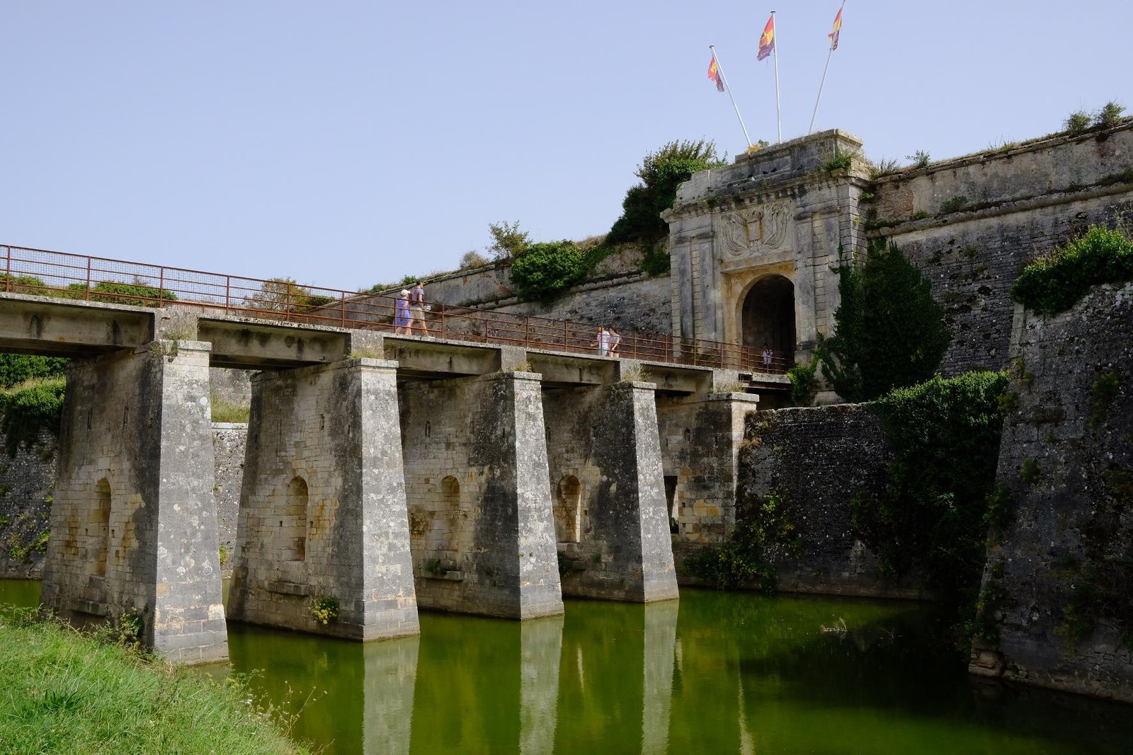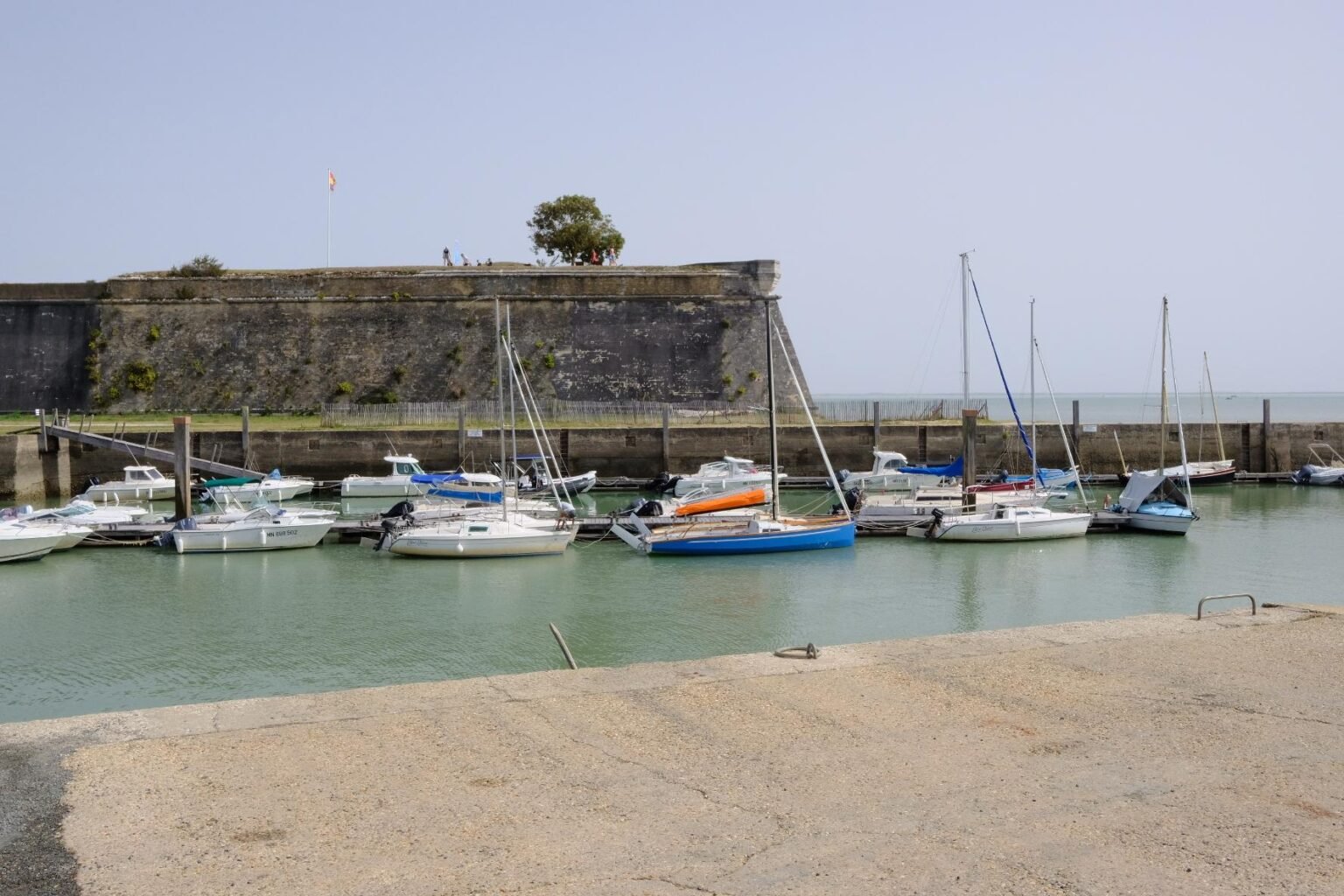 Arrivée sur l’île après une longue traversée du pont depuis lequel on aperçoit le Fort Louvois, je vais au château d’Oléron qui est quelques km au nord.