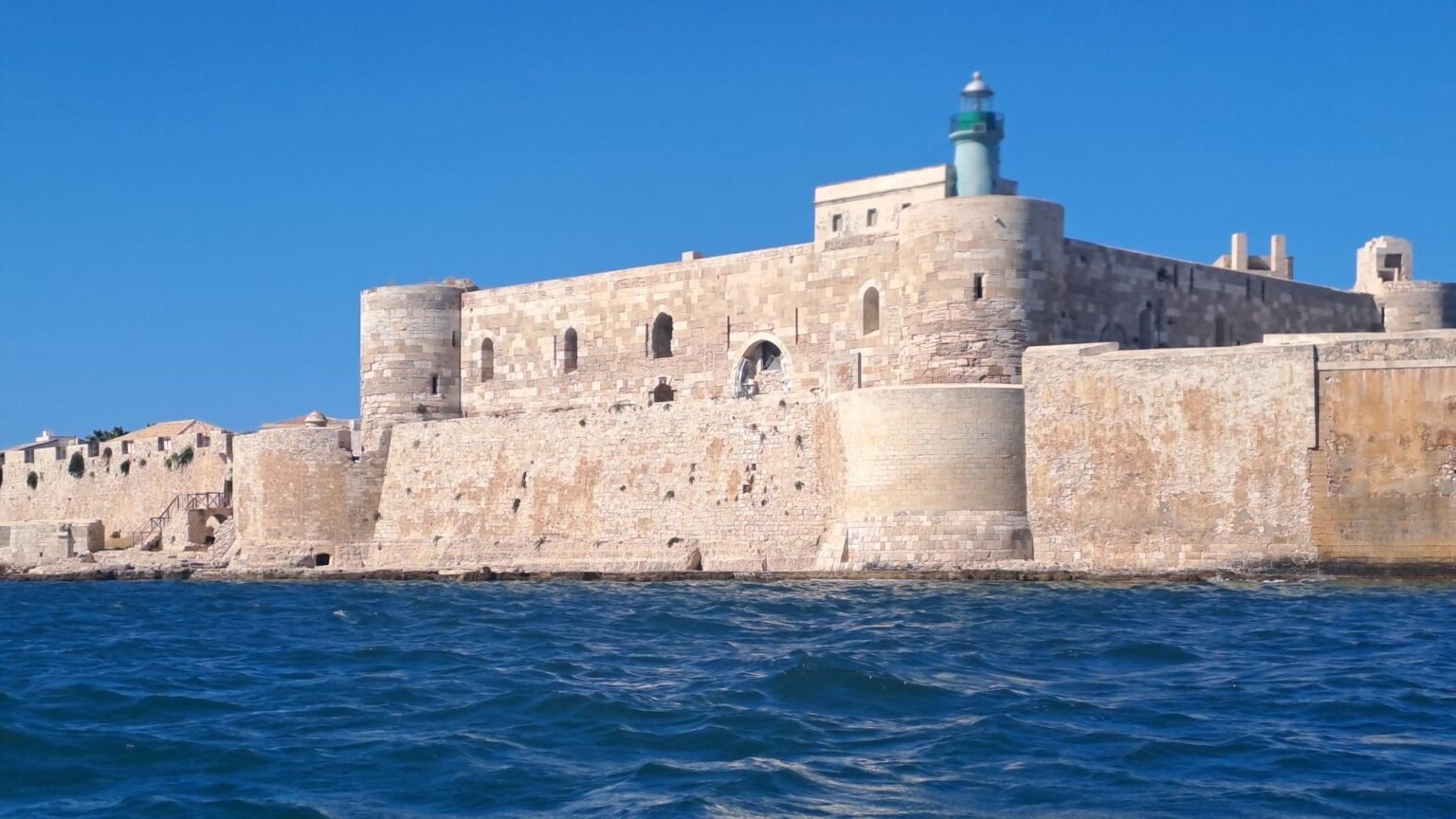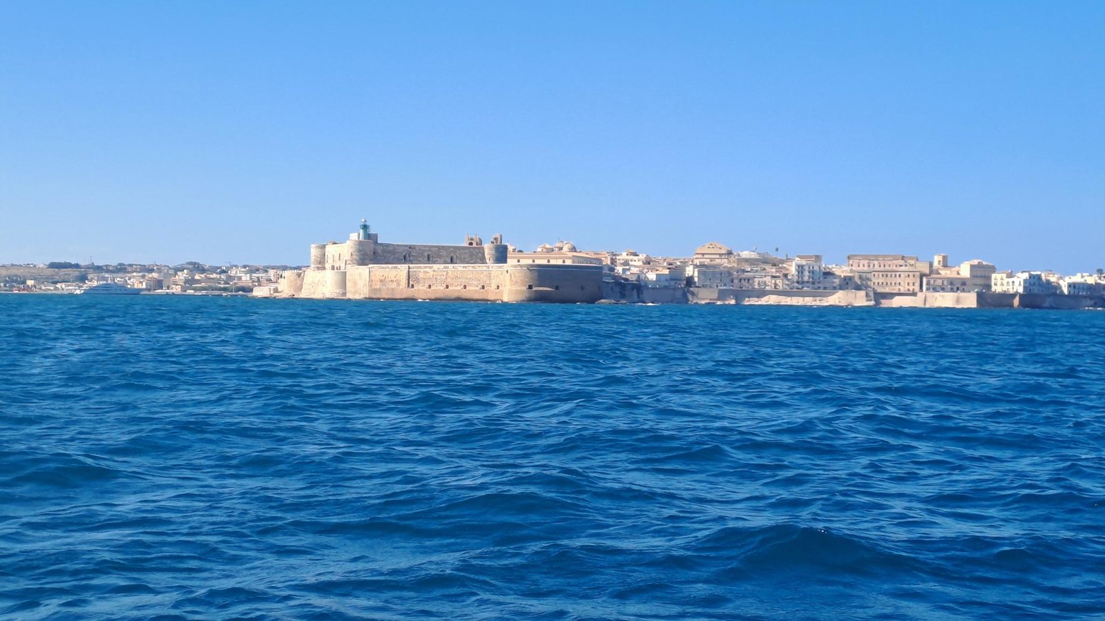 De retour sur notre petit semi rigide, on finit la boucle en longeant les remparts du Fort d’Ortigia.