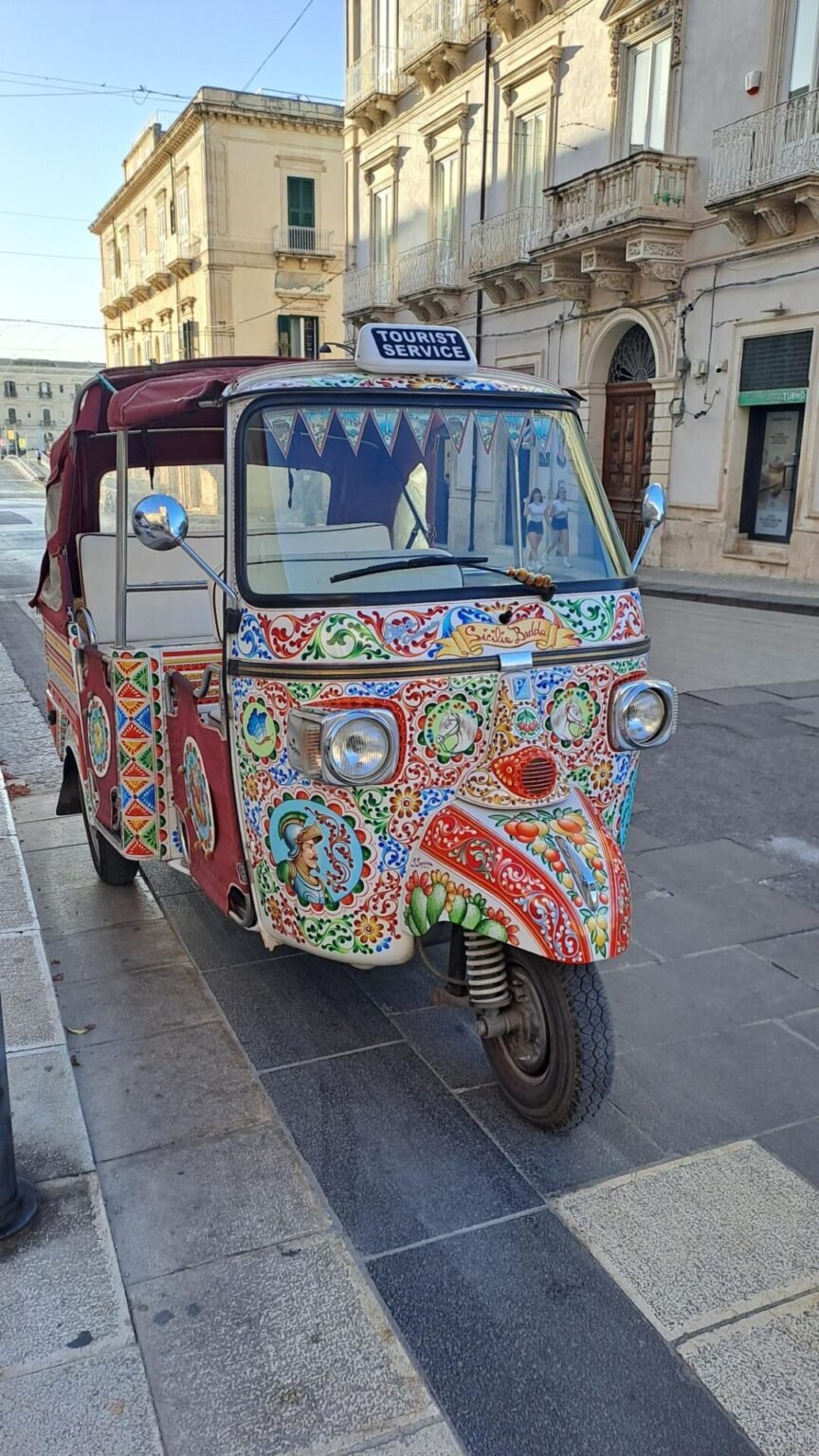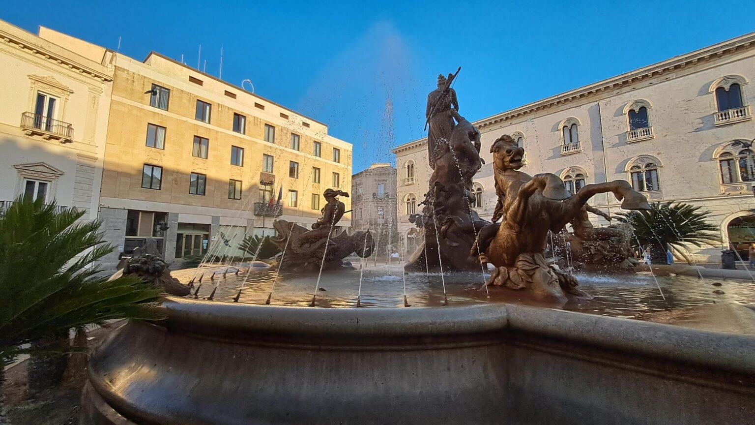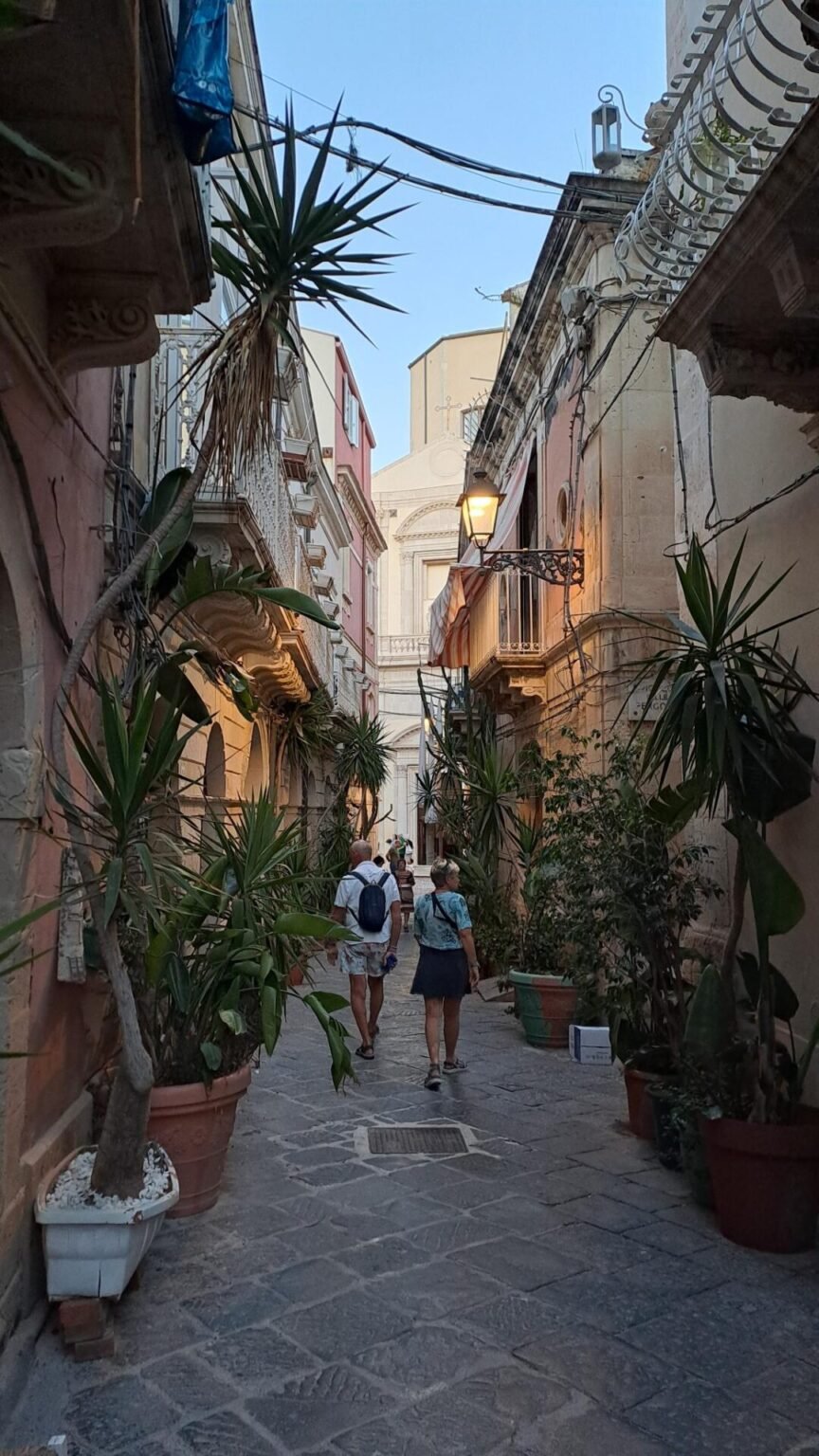 Pendant que la machine de la laverie tourne, on en profite pour faire un tour dans les petites ruelles d’Ortigia. On passe devant une belle grande fontaine, puis dans les petites rues du quartier juif décorées par les habitants avec des plantes, des guirlandes lumineuses en guise de ciel.