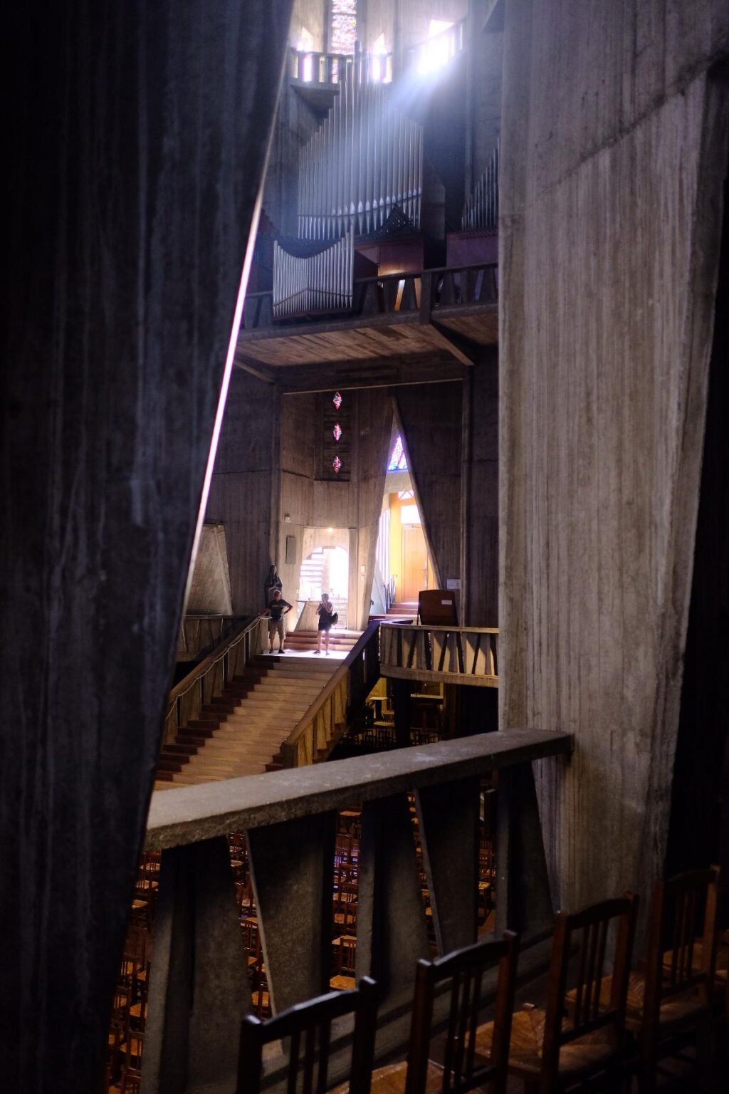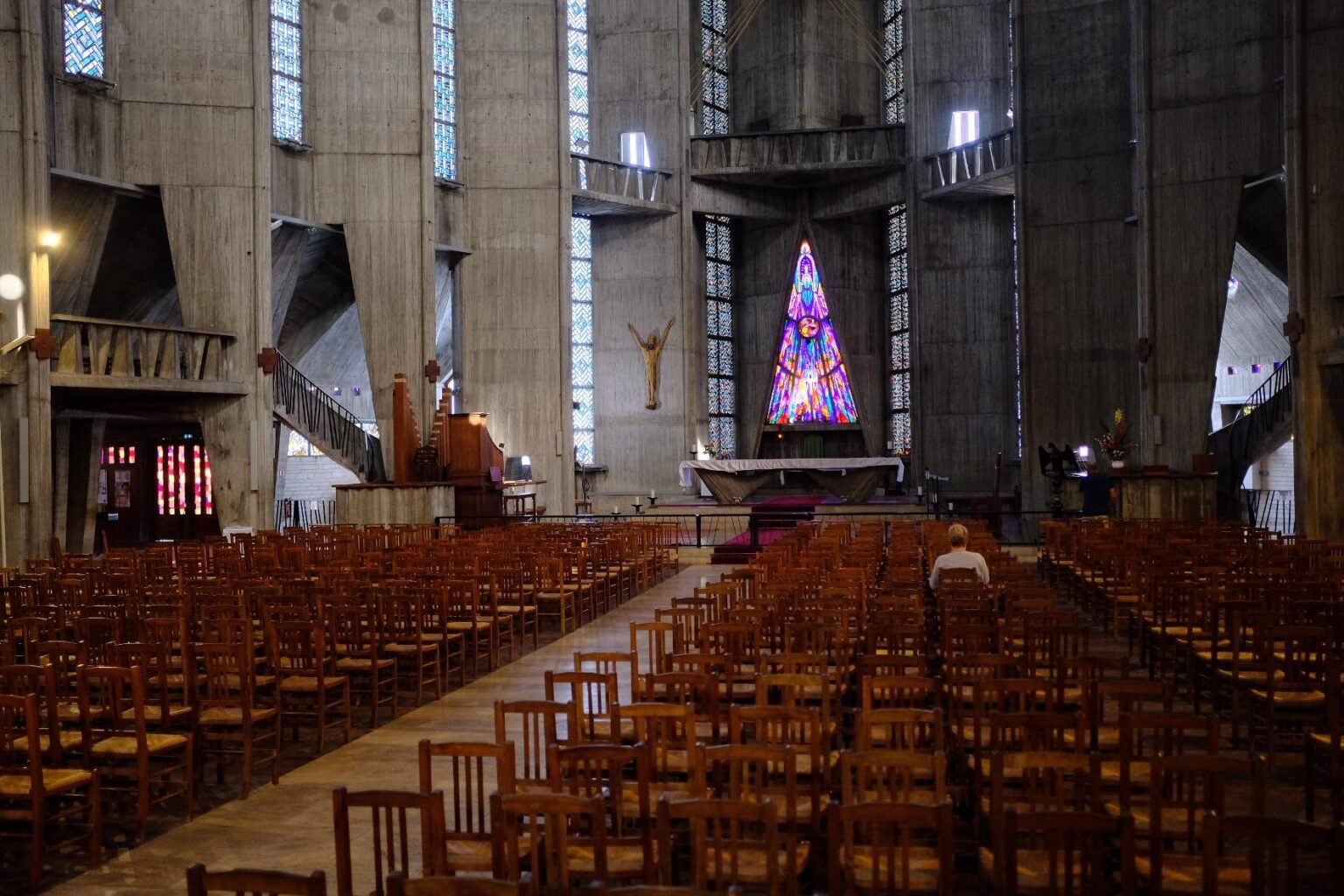 La cathédrale en béton est particulière, le style change beaucoup de ce qu’on a l’habitude de voir.